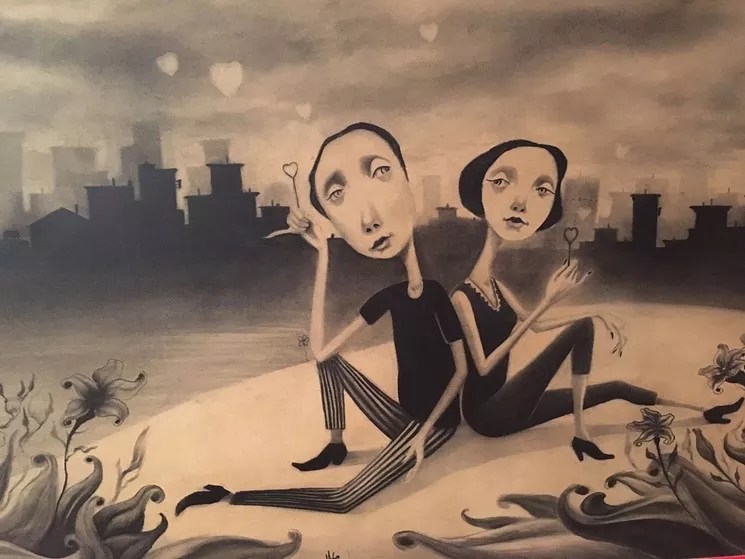 For now, the couple’s identity is a mystery. Caraveo won’t say whose image he painted, but Roschi suspects it’s the artist and his girlfriend.