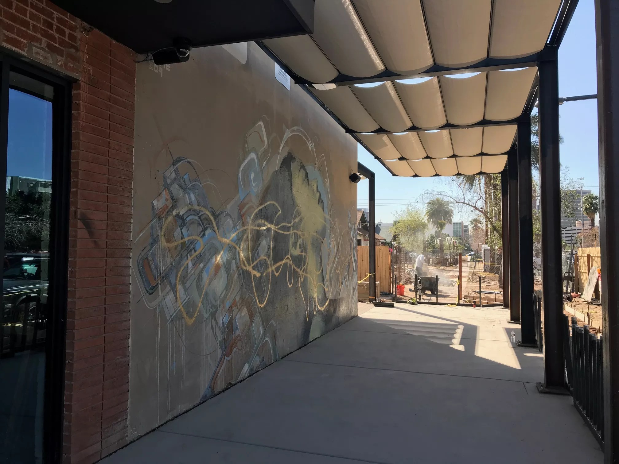 Currently, a patio is being built around the mural for Aaron Chamberlin’s restaurant Taco Chelo, which is slated to open in March. It’s part of a new multiuse development called The Blocks of Roosevelt Row. The restaurant is a joint venture between Chamberlin, chef Suny Santana, and artist Gennaro Garcia.