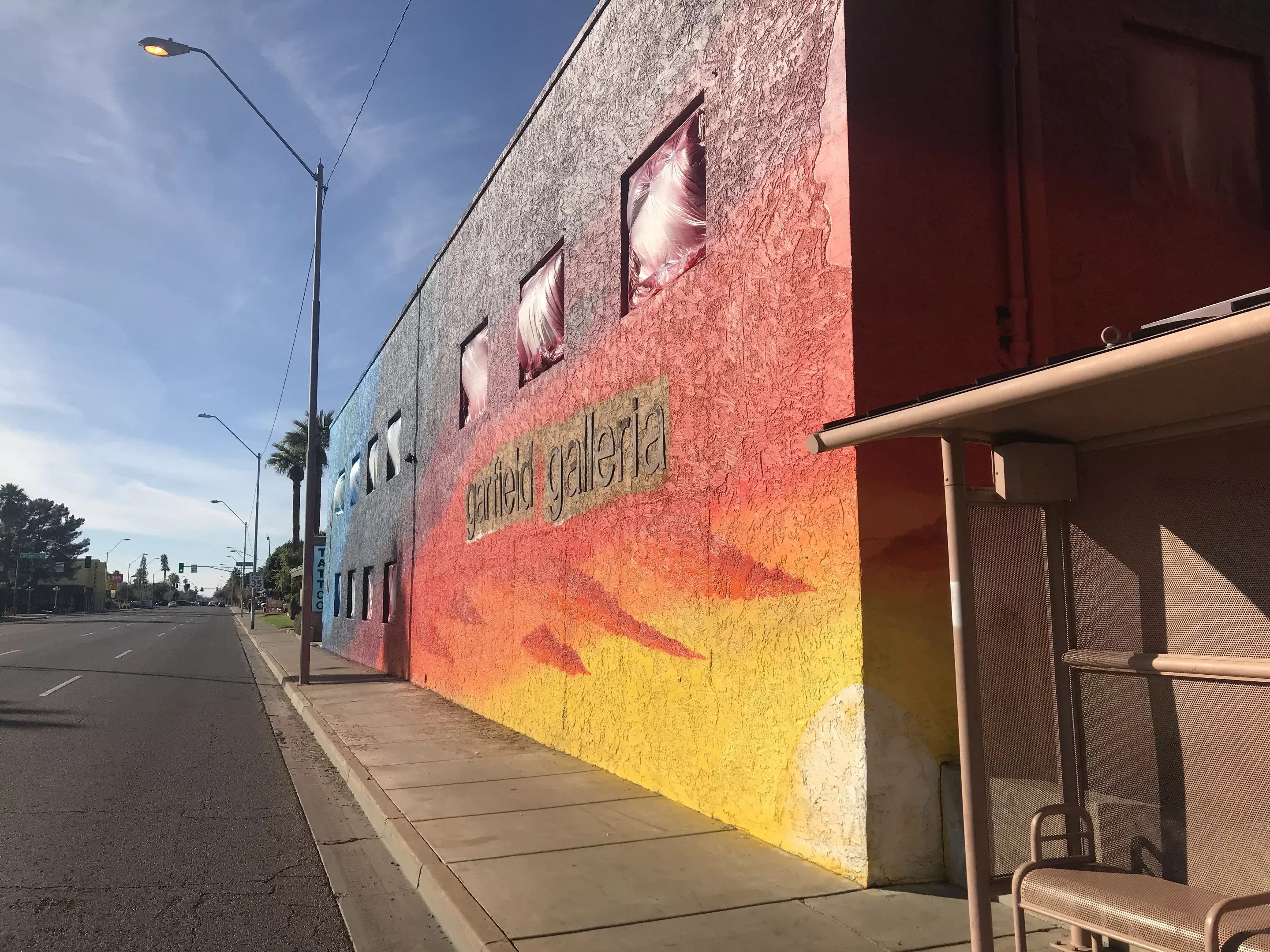 Cox painted the mural in 2011, when he was based in Phoenix. It was located on a south-facing wall of a building that houses an art studio, gallery, and artist live/work spaces on West McDowell Road near Third Avenue. Today, Cox’s studio is in Tucson.