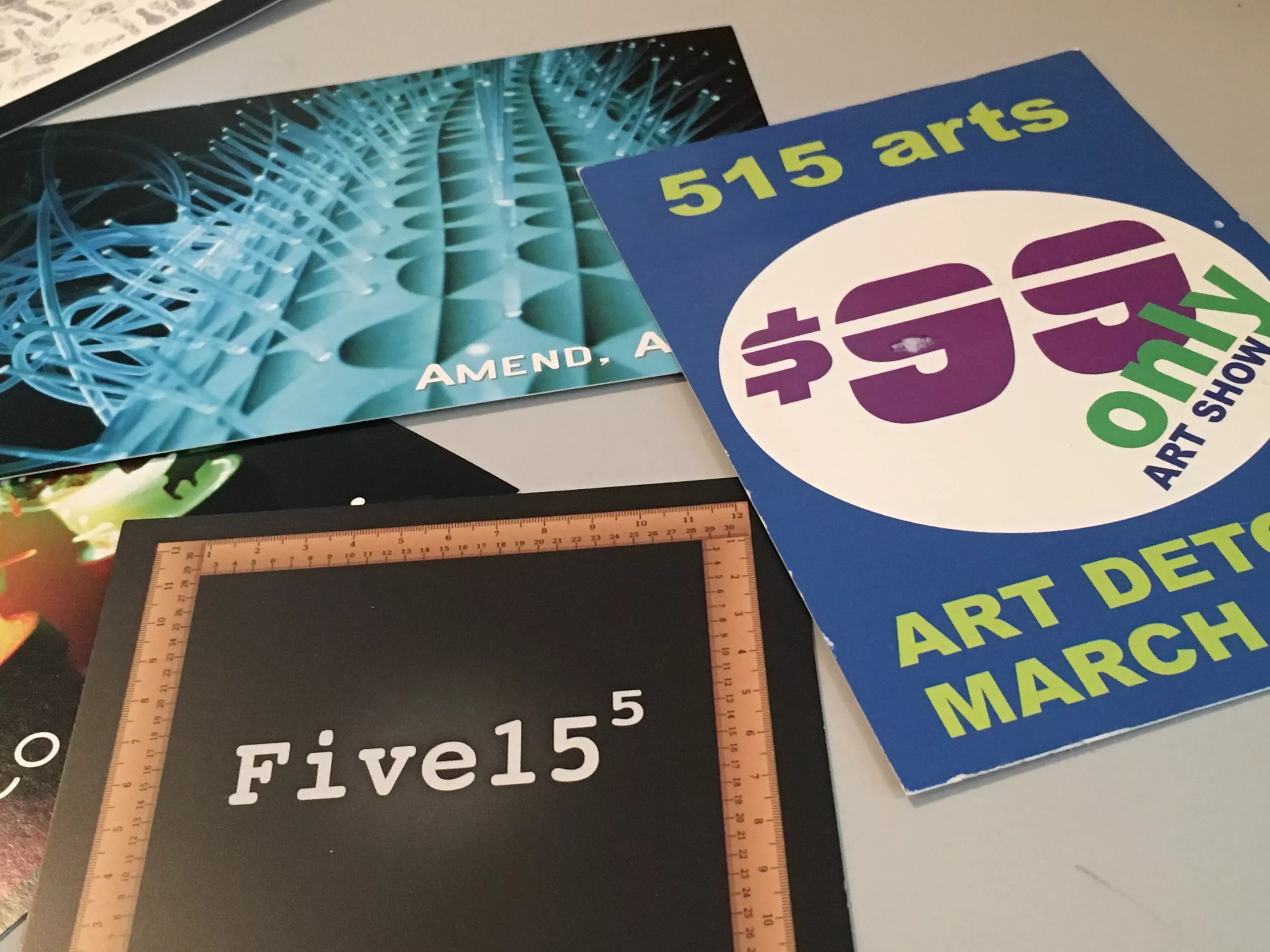 A few old Five15 Arts exhibit postcards collected by one of its members.