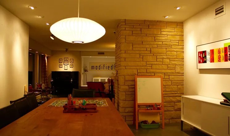 On the wall just inside the front door hangs a Modified sign, a gift to Jim and Amy from Kimber Lanning. Modified Arts was opened in 1999 by Lanning, who also founded Local First Arizona, as an art space and venue for live music and performance.