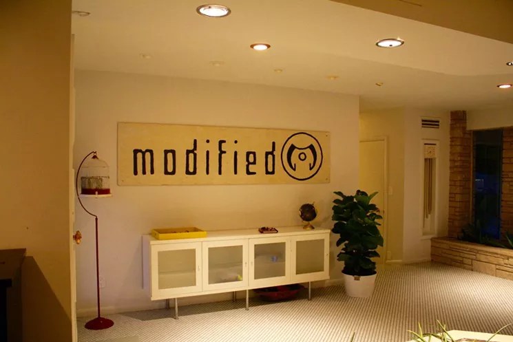 A gift from Kimber Lanning, the Modified sign hangs in the entryway and serves as a reminder of how much Phoenix has changed over the past 15 years.