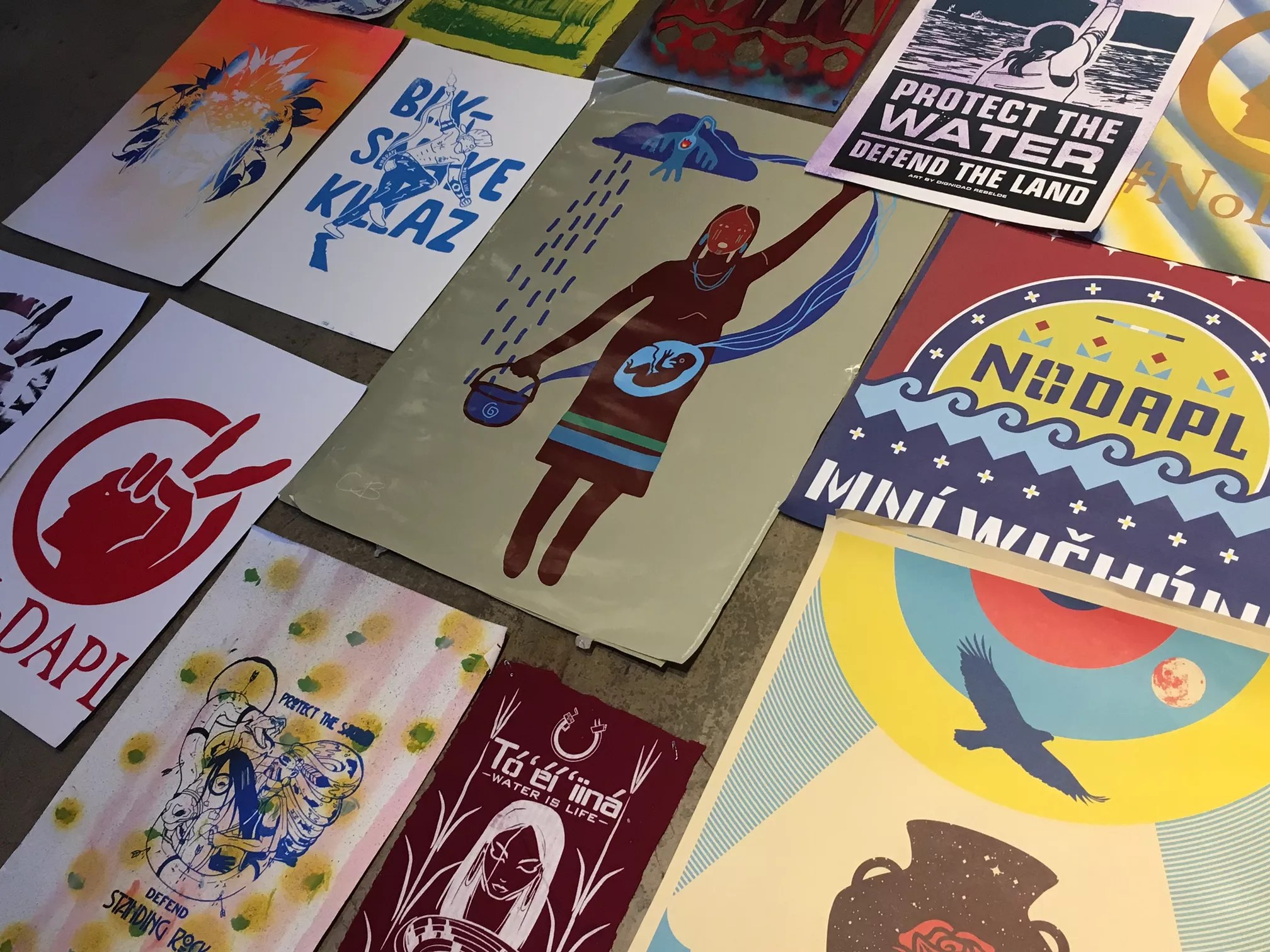 Signs Phoenix artist Averian Chee brought back from the Standing Rock protests in North Dakota.