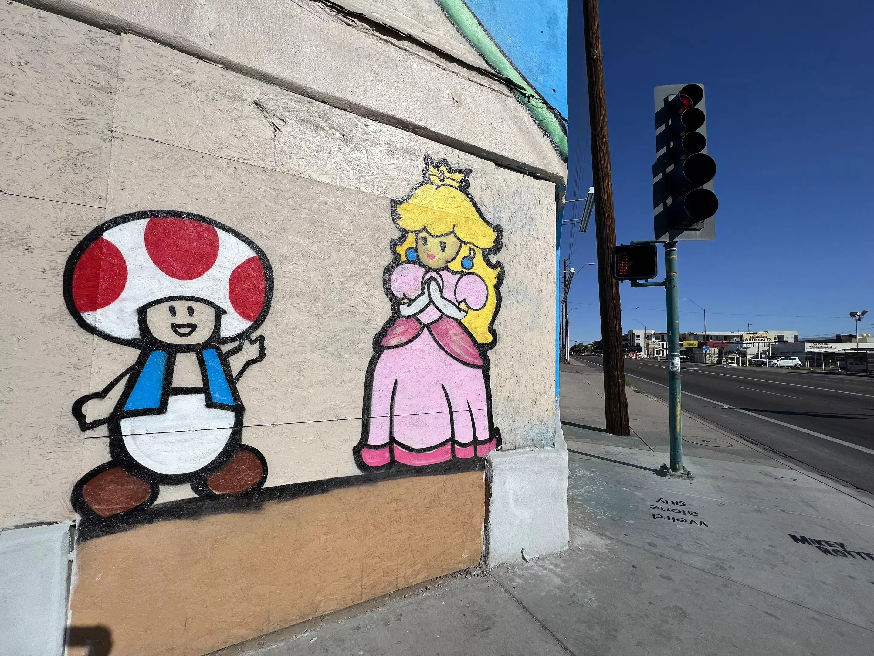 Along 16th street, visitors can see a “Super Barrio Bros.” logo done in colorful letters in the style of the “Super Mario World” game that came out for the Super Nintendo in 1990. That wall also includes Mario riding in a lowrider, Luigi flying through the air, Goomba pacing on the ground and other fun callbacks to the game series.