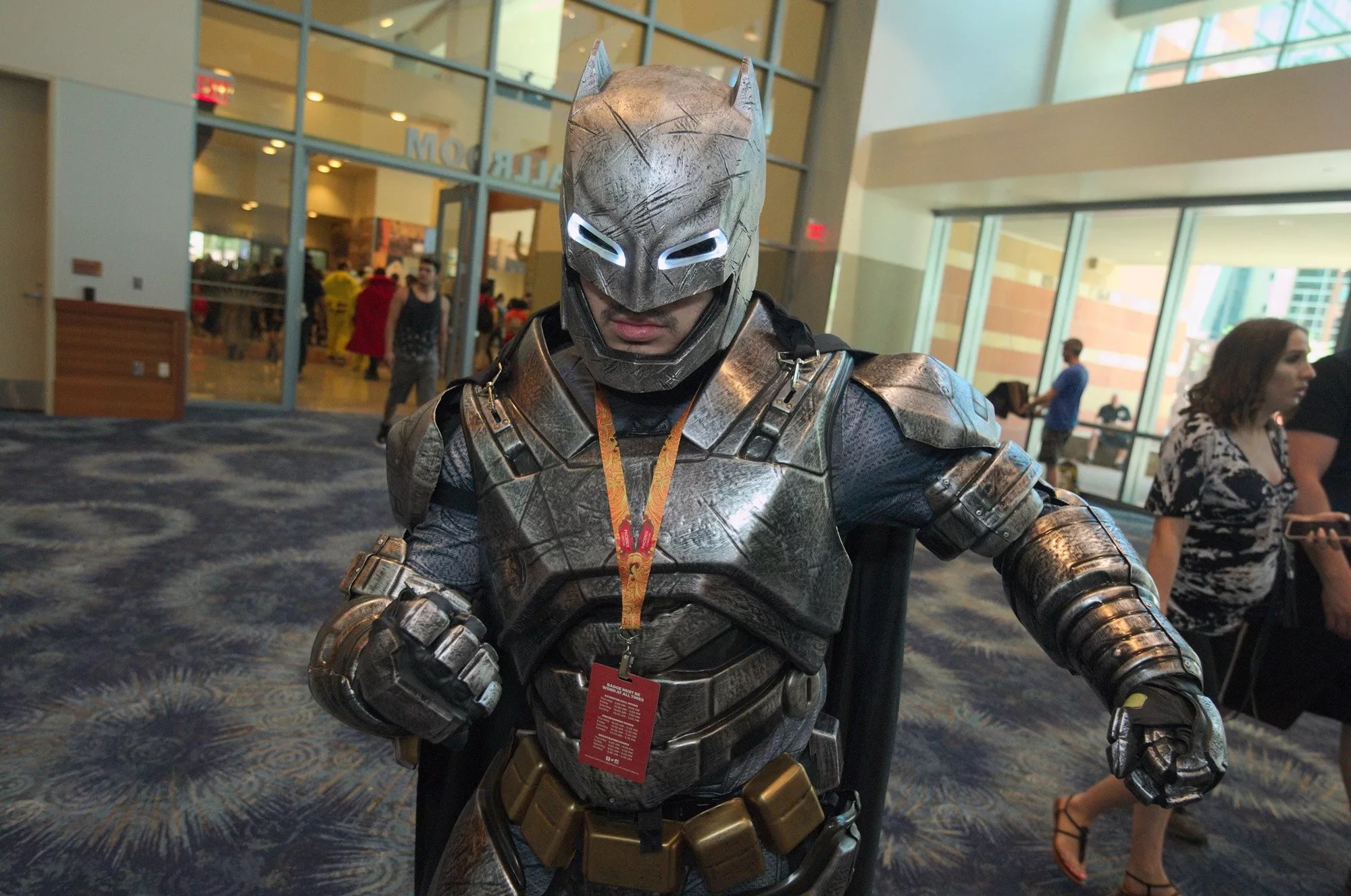 Despite what you may think, last year’s execrable Batman v. Superman: Dawn of Justice wasn’t a complete and total crapfest. Helping illustate the theory that there’s occasionally cool shit to be found in bad movies, a few things about the superhero film were rad, including Wonder Woman’s ass-kicking appearance and the armored “mech batsuit” sported by the Dark Knight during his clash with Kal-El. We weren’t the only ones to think so, as this local cosplayer built an excellent mockup of the armor, complete with glowing eyes. Well done, sir.