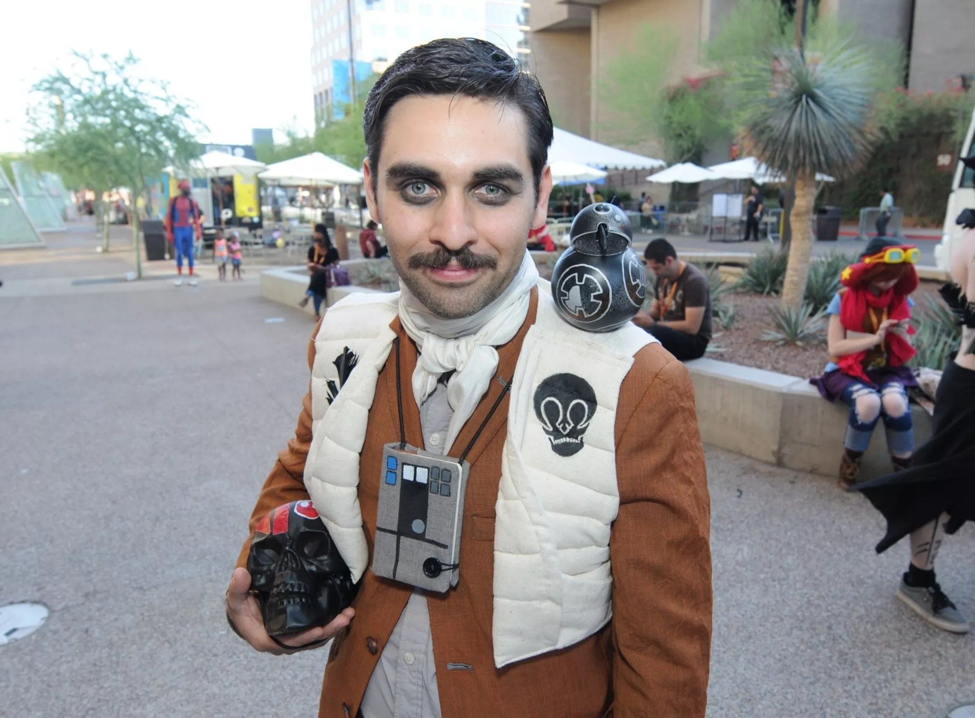 As his nickname implies, local cosplayer Smart Alex has a wicked sense of humor. Hence his mashup merging mopey author Edgar Allan Poe with hunky X-Wing pilot Poe Dameron from Star Wars: The Force Awakens. It wasn’t his only amusing costume at Phoenix Comicon, as he also came as another mashup, Sirius Black Widow (you do the math), and glorified extra Guy Fleegman from Galaxy Quest.