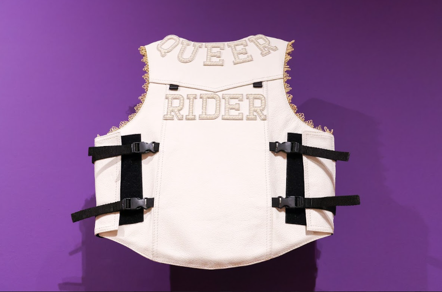 In their exhibition “Rough Rider,” currently on view at ASU Art Museum, Villalobos explores rodeo culture, creating bejeweled saddle covers, rhinestone protective gear, elaborately embellished chaps and large-scale photographs that present the artist’s queer body being bound by rope or punctured by metal used to tame bulls.