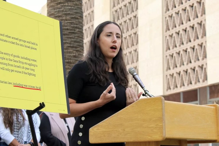 Activists demand that the Arizona senator call for a ceasefire in the Israel-Hamas war.