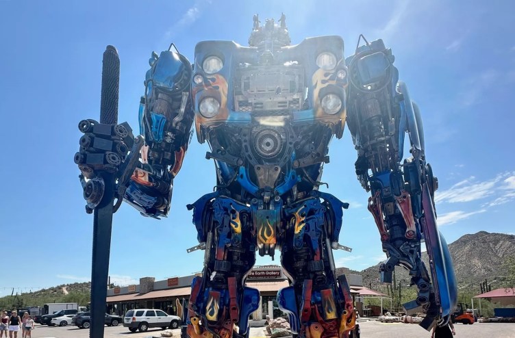 The nearly 15-foot-tall Autobot debuted last month to keep watch over the Cave Creek business. Here’s where to see it.