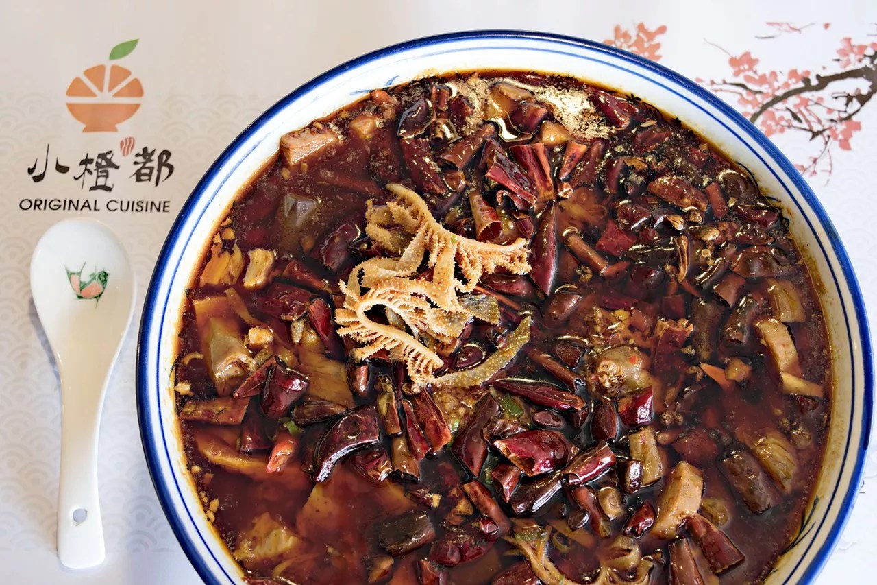 “Pork blood, intestine, Spam in hot chili oil” sounds like a random phrase lifted from a cookbook. Instead, though, it’s one of many delightful stews on the menu at Original Cuisine, a Sichuan Chinese restaurant in Mesa with a sweeping array of noodle dishes, pan-fried specialties, stews, and veggies. This particular pork stew is spicy, salty, sour, bitter, and smoky all at once, showcasing an impressive depth and flavor that’s a hallmark of good Sichuan cooking. This dish has it all: the lip-numbing properties of Sichuan peppercorns; neat squares of coagulated pork blood; and perhaps most ingenious of all, hunks of salty luncheon meat. It’s a pork stew that will jolt your taste receptors in new and unexpected ways. Don’t say I didn’t warn you.