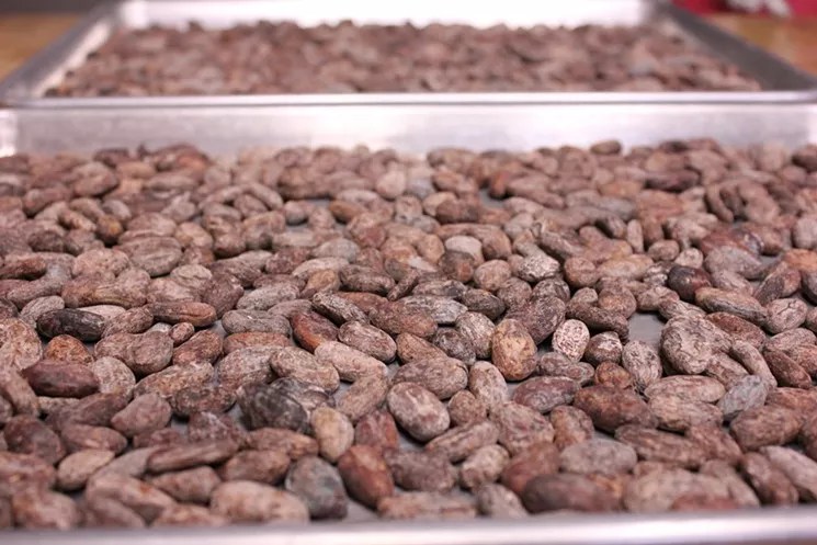 Denae Hostetler crafts chocolate the hard way. Her DNA Chocolate makes the competition taste like candle wax. She sources burlap sacks of Criollo beans through a nonprofit called Singing Rooster that provides Criollo from a group of Haitian farms. The process of unlocking that flavor begins with cleaning the beans. Once they’re clean, Denae roasts them, runs them through a winnowing machine that frees the interior cacao nib from the bean’s shell, stone-grinds the nibs for three days (adding Peruvian cocoa butter and cane sugar before the granite grinders get going), then ages the resulting mixture for two to four weeks. Finally, she tempers the molten mass in a machine and molds it. The roasting happens in a common kitchen oven, the aging on your everyday shelf. It’s the care and cottage approach that make DNA Chocolate divine.
