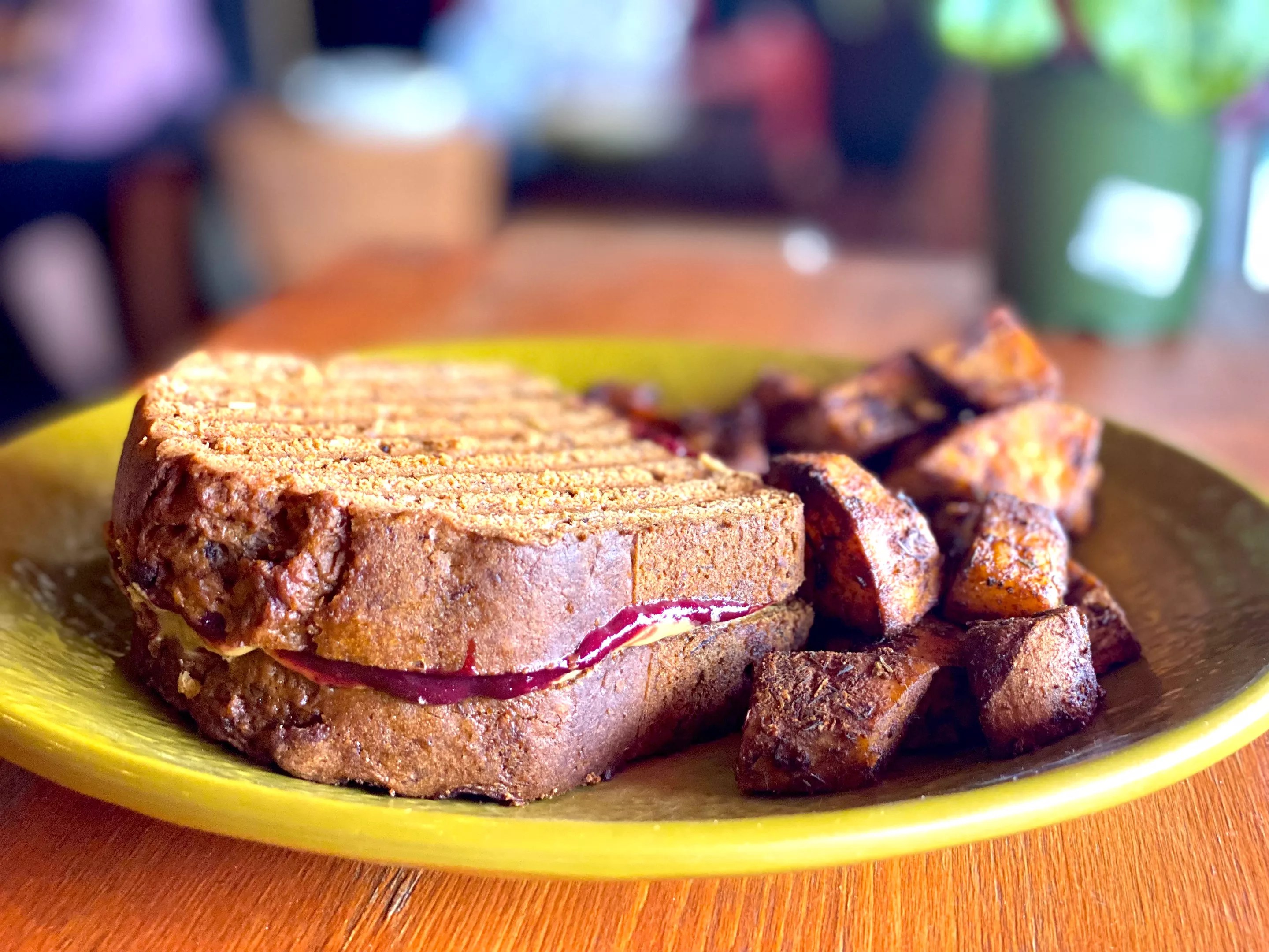 If the bread makes the sandwich, the Skinny Elvis from Whyld Ass is all shook up. This delightful creation is bookended by dense housemade banana bread that’s kissed with cinnamon and amply sliced; it’s a bona fide treat on its own, and makes you wonder why all peanut butter sandwiches aren’t made with it. But add in a slathering of natural peanut butter and berry compote and a turn on the panini press that leaves a crusty, ridged exterior and makes the moist middle even more heavenly, and you can’t help falling in love with this King. If savory is more your thing, Whyld Ass has you covered: The BLTA with housemade zucchini bacon, greens, tomato, avocado, and sunflower-seed mayo is a standout that will cure veg cravings and hangovers alike.