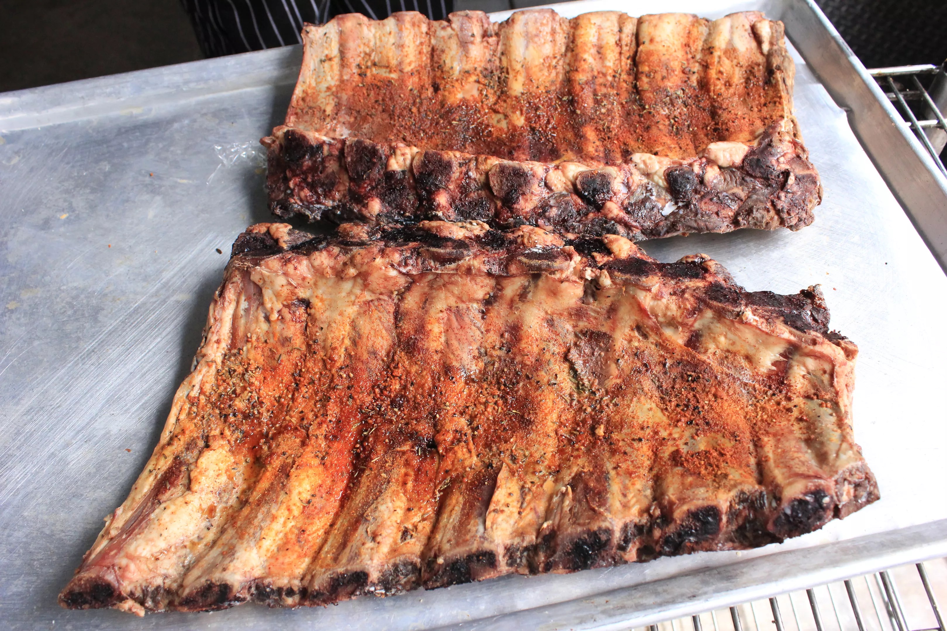 Beef spare ribs, mid-smoke, at Little Miss BBQ.