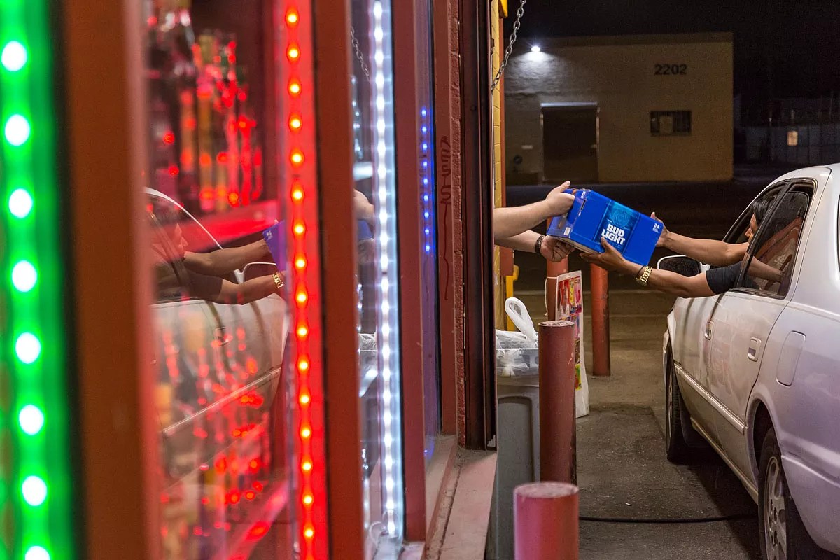 Often marked by inviting neon signs, the drive-thru liquor stores of metro Phoenix have a history as lengthy as their oil-stained driveways.