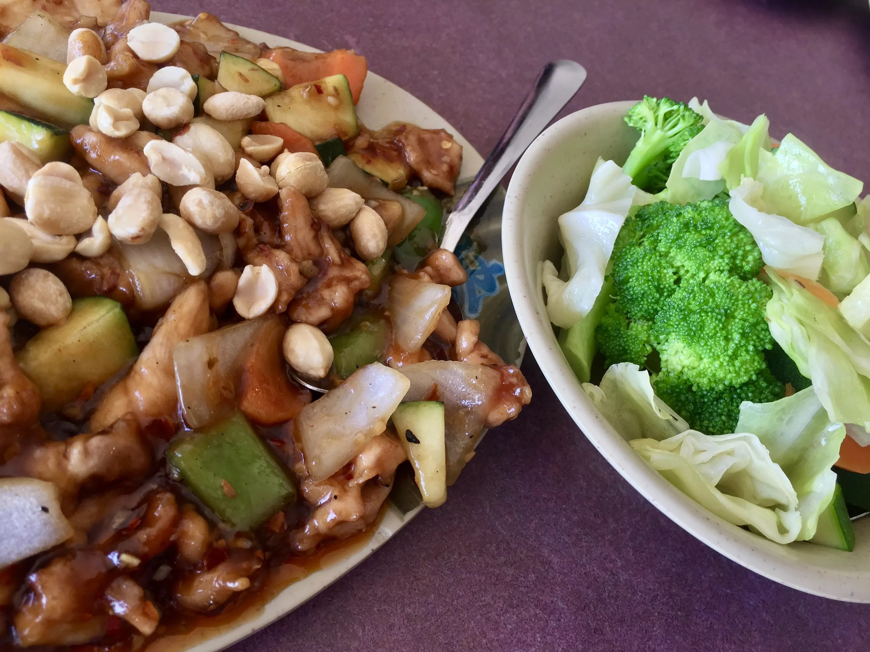 Vegetables instead of rice runs $2 extra at Asian Cafe Express in Mesa, which nicely complements the kung pao chicken. If you’re undecided on protein, fish always has the fewest carbs, so go for the kung pao shrimp at Chen and Wok, and hold the rice.