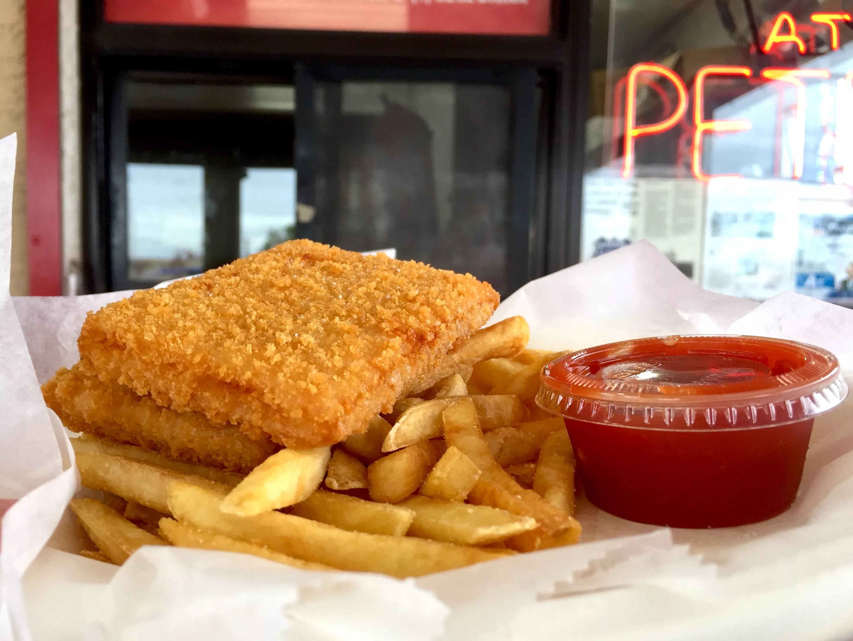 Pete’s Fish & Chips with that special Pete’s sauce –
