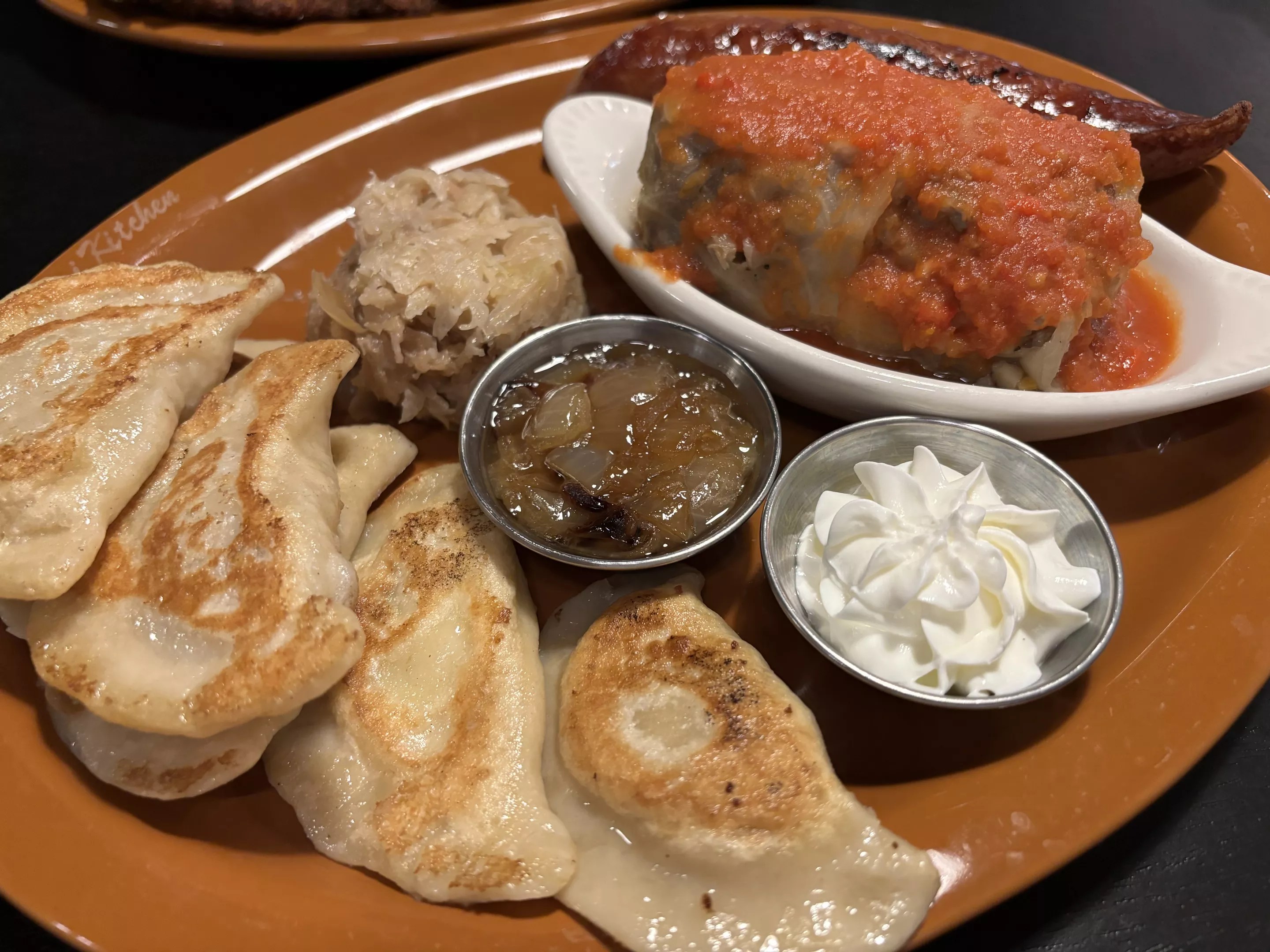 Sampler plates allow customers to try many different dishes at All Pierogi.