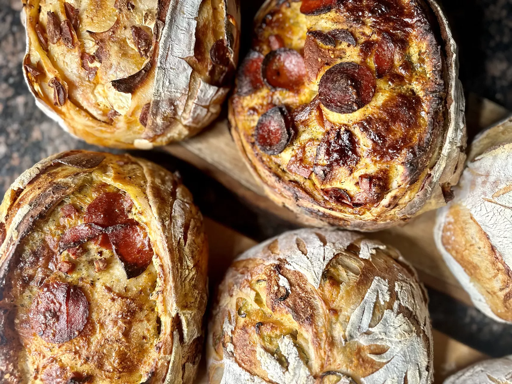 Cano kept dabbling. He now has 14 rotating sourdough recipes, including a Columbia chorizo loaf with queso Columbiano, a Greek loaf with olives, sun-dried tomatoes and feta, a muffuletta loaf, a loaf with brie and nuts, a rosemary garlic loaf, a raisin cinnamon brown sugar loaf and holiday season cranberry walnut and pumpkin spice loaves.