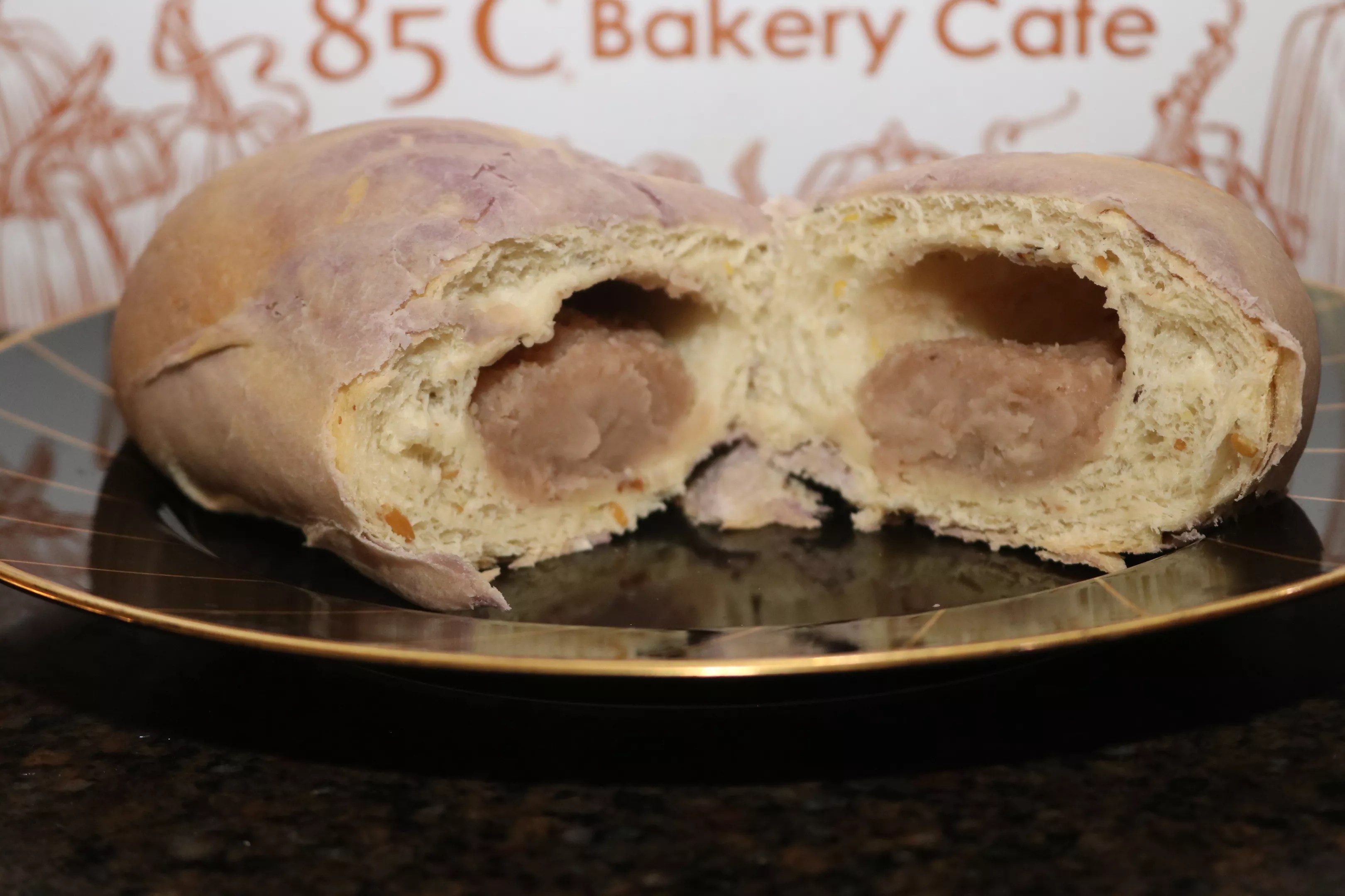 The bakery also creates savory pastries, including Jalapeño Cream Cheese bread, a Spicy Sausage bread that has cheese and is topped with Sriracha and mayonnaise, and a Pork Sung Bun, a soft Taiwanese bun topped with dry shredded pork and 85°C house-blended mayo sauce.