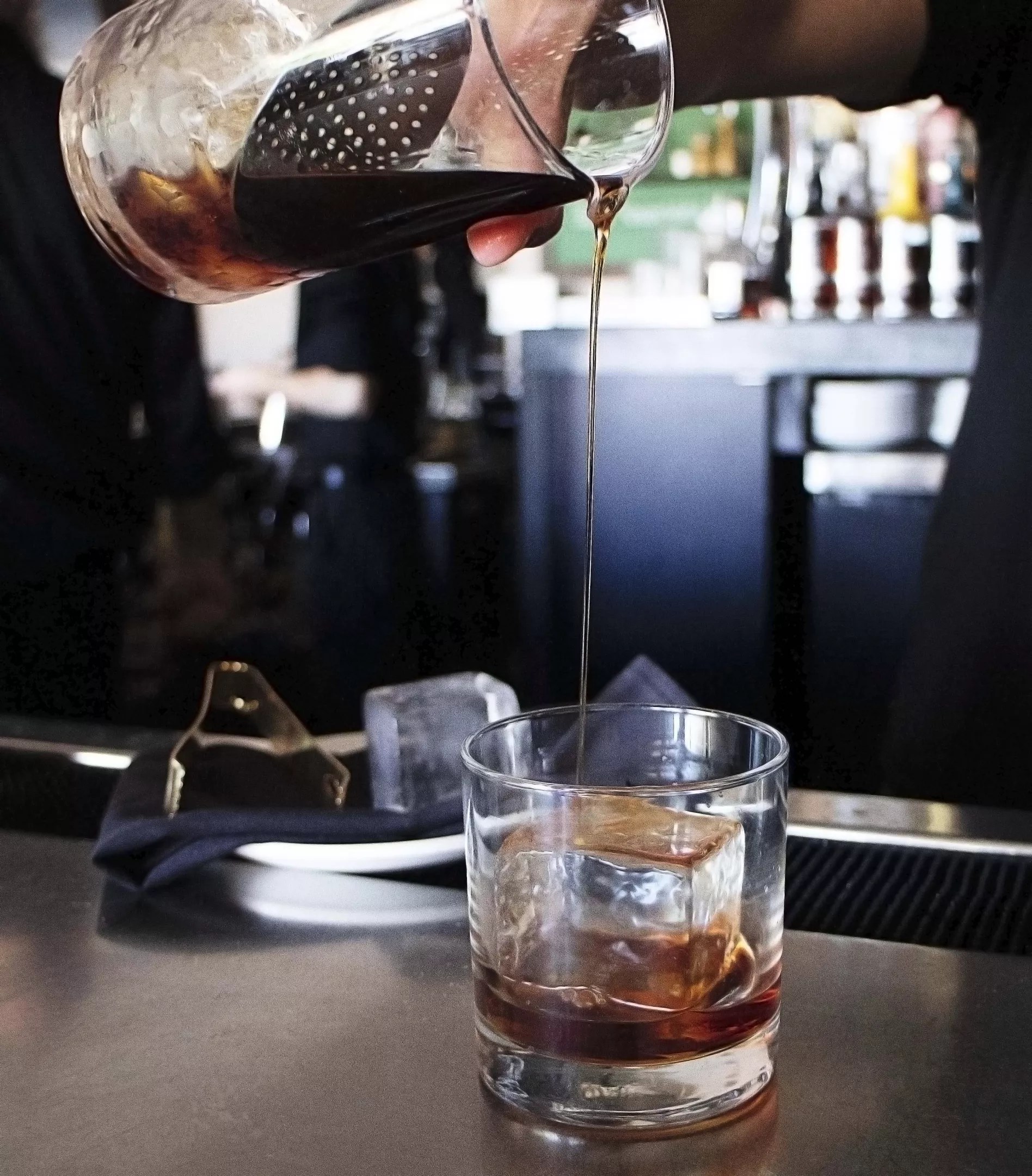 Over at The Gladly, a cocktail called Coffee & Cigarettes incorporates a large cube for a dramatic effect. The ultra-cold ice helps slow the dissipation of added smoke, which billows upwards as the beverage is poured into the glass.