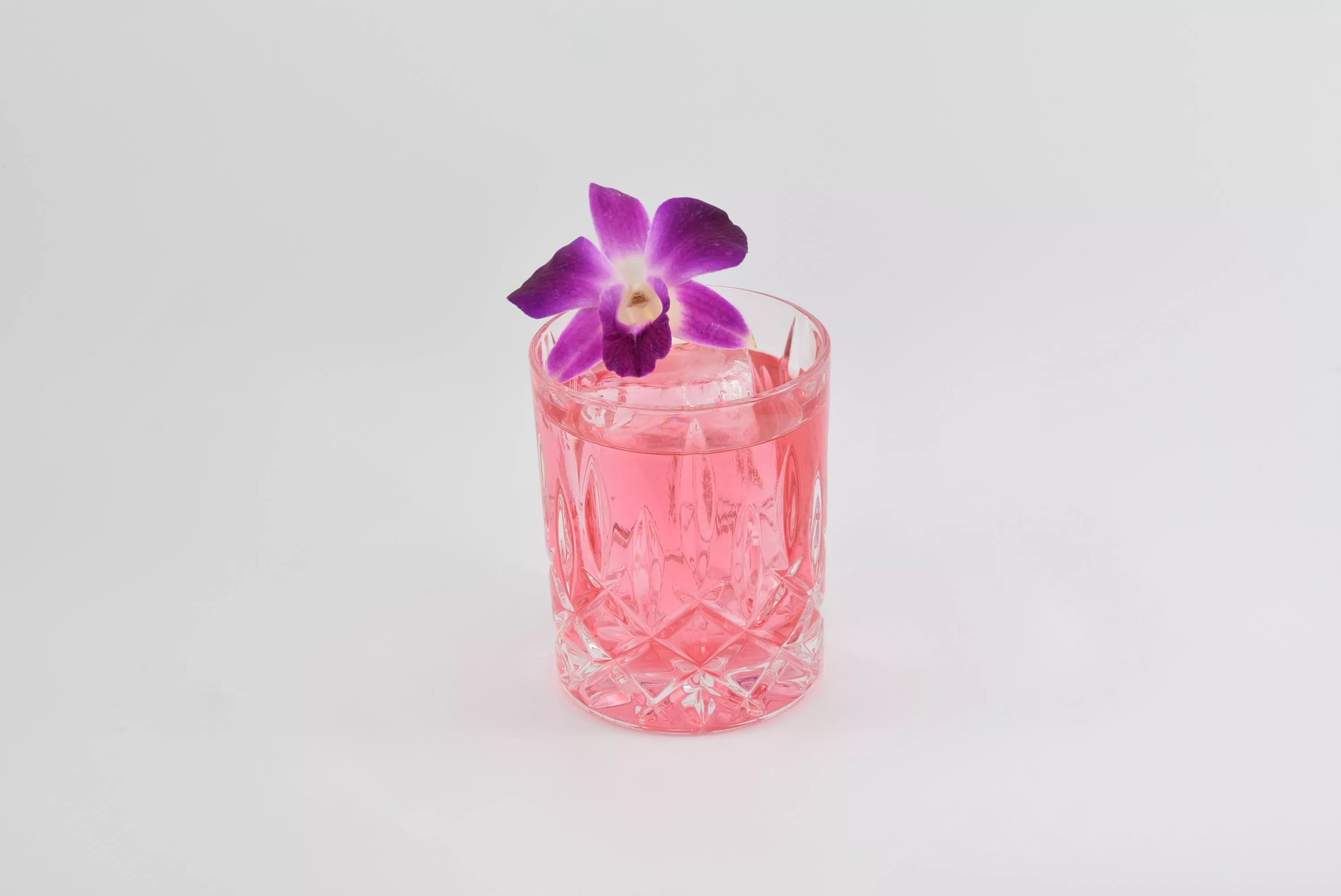 “The clear ice really helps to illuminate the drink, which is also clear with this slight pink hue. It’s beautiful,” Asher says.