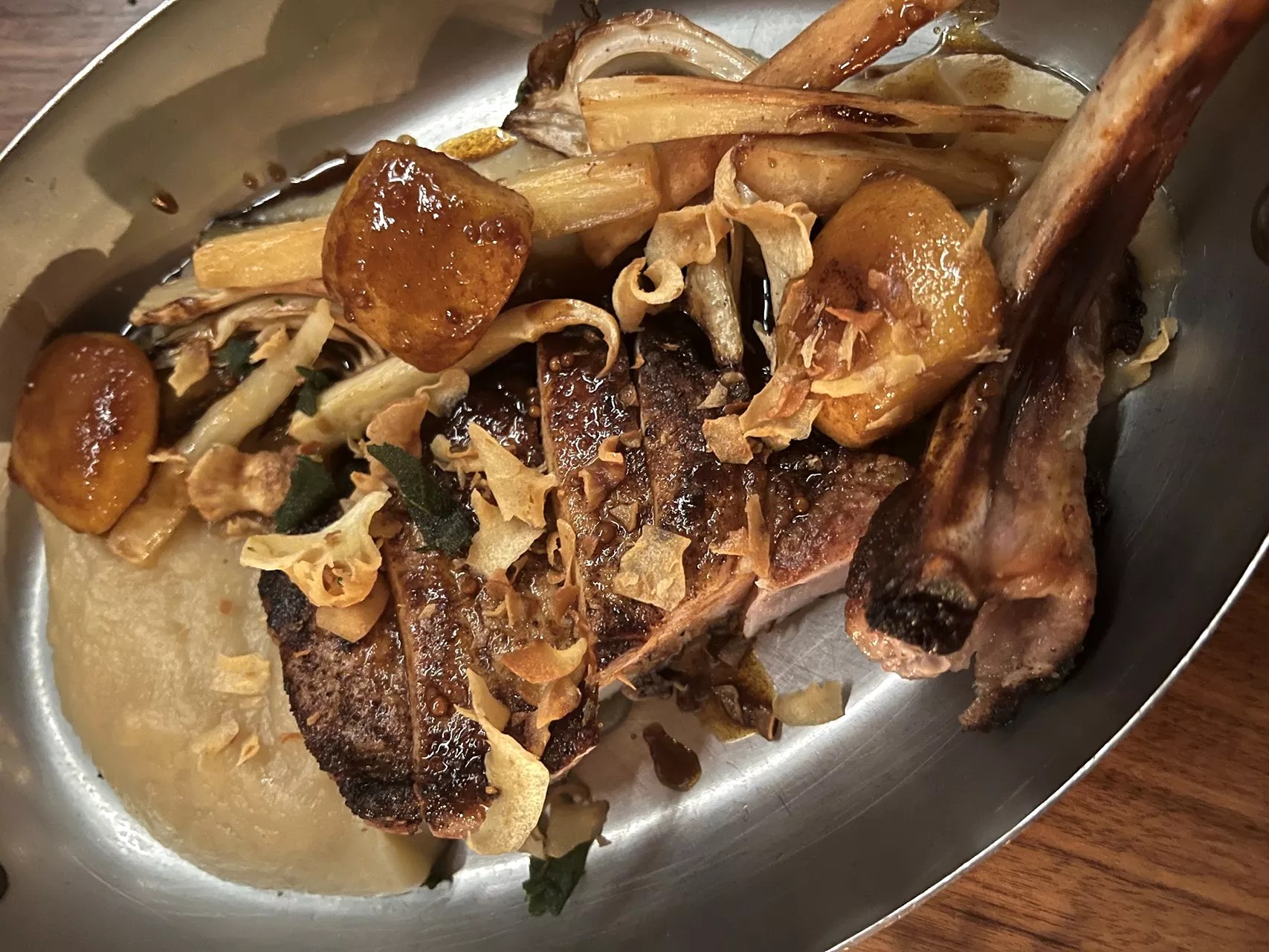 The Glazed Pork Belly appetizer is a warm, comforting dish to dive into and a perfect pairing with a seasonal signature cocktail. For an off-the-menu secret, order a Pumpkin Spiced Old Fashioned.