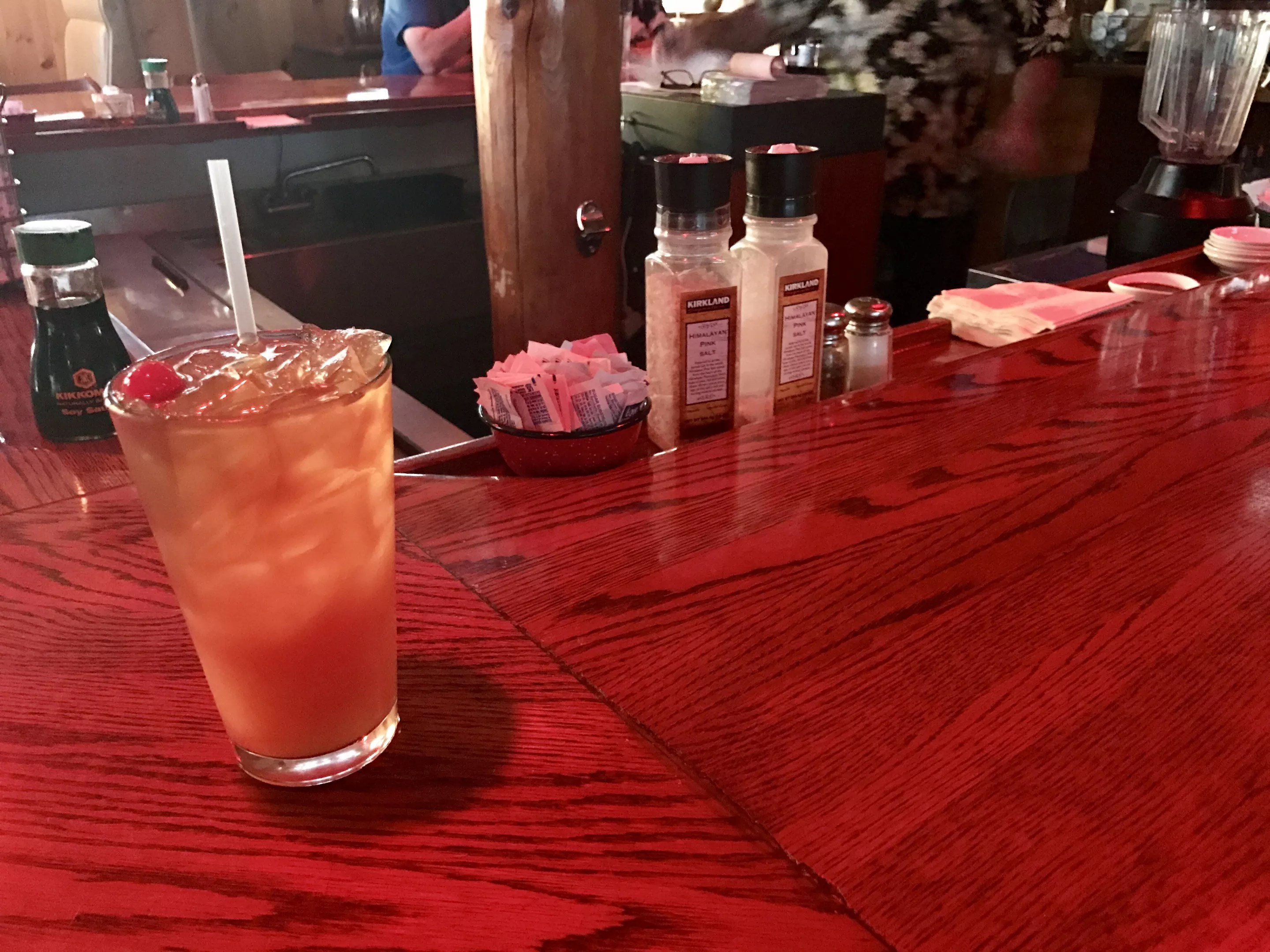 Our mai tai, which was like one you’d get on a plane, only bigger.