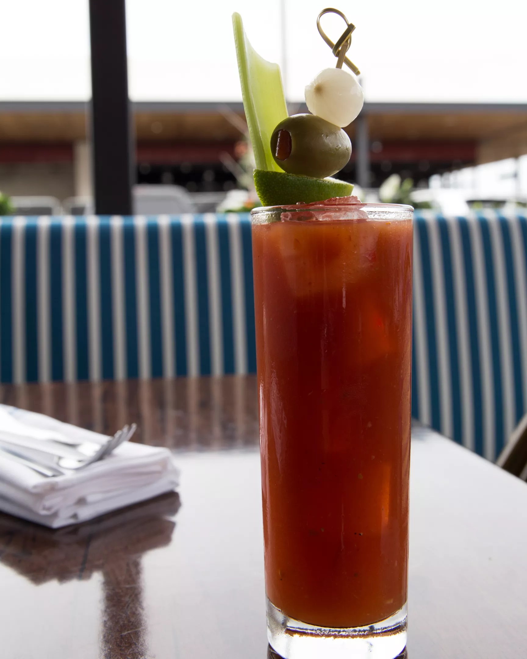 Of all the bloody marys on this list, this is the only one without any vodka – instead there’s Herradura Silver tequila. The Bloody Maria from Barrio Café is a spicy drink, topped with a lime wedge and a chile de árbol that’s trimmed with a spicy salt rim that runs about halfway down the glass.