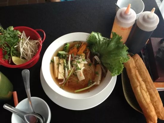 With an extensive menu including both Thai and Vietnamese options, Da Vang is a family-friendly restaurant with big tables and a bright atmosphere to complement the flavors put into their dishes. The pho, offered only with the traditional beef broth, is full of flavor without being too heavy or greasy, only enhanced further by the addition of hoisin sauce and Sriracha. Huge pieces of bok choy rest on the ample serving of rice noodles, while offered toppings of lemon and dandelion leaves come in addition to the standard bean sprouts, basil, and jalapenos. Accompany this with coconut water straight from the source and you’ll be set.