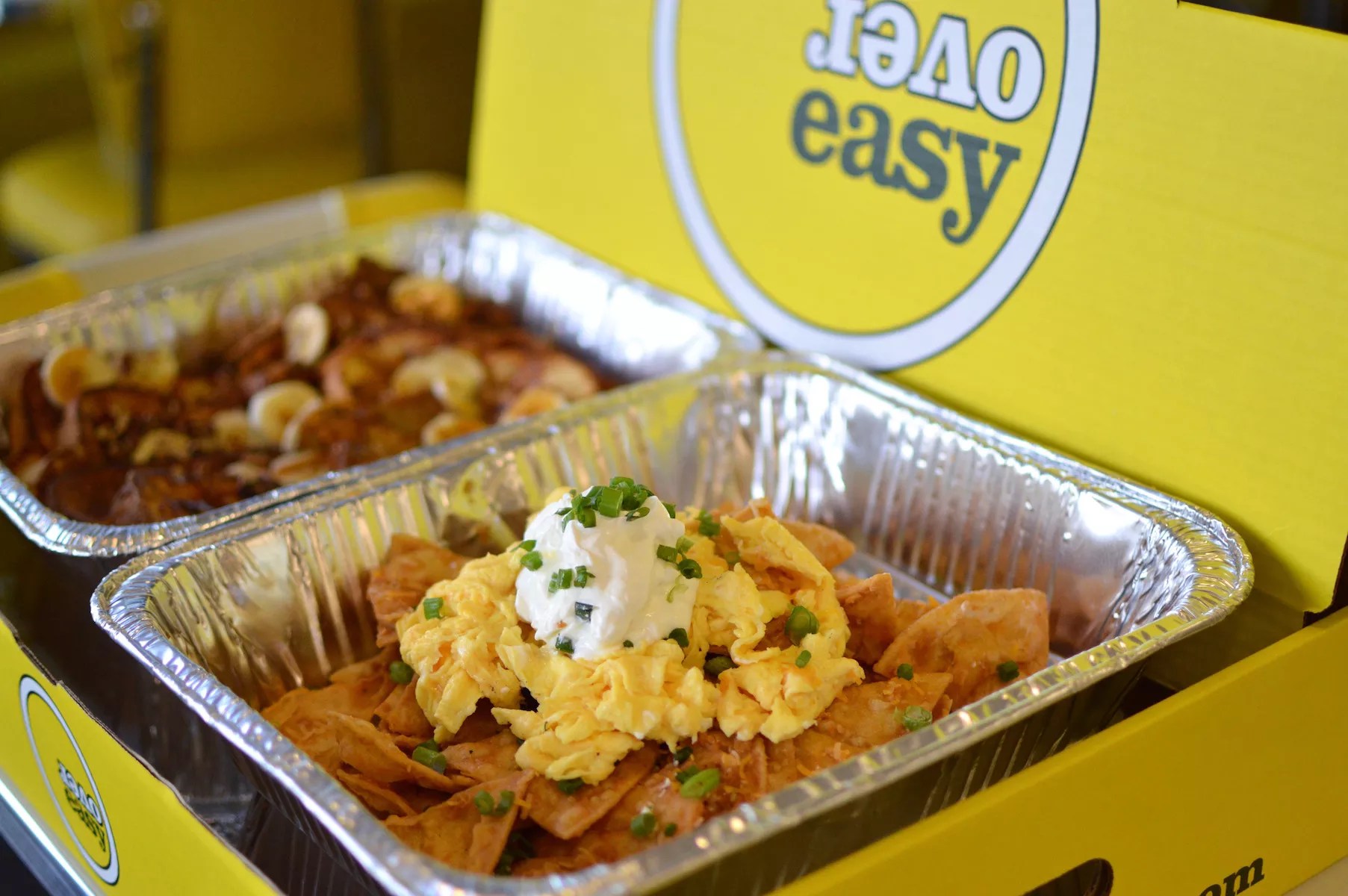 This local breakfast and brunch chain knows how to put together a plate of chilaquiles. At Over Easy, the chilaquiles dish consists of corn tortilla chips loaded with chicken, two eggs, cheddar cheese, ranchero sauce, pico de gallo, sour cream, and green onion. And the order is gluten-free to boot.