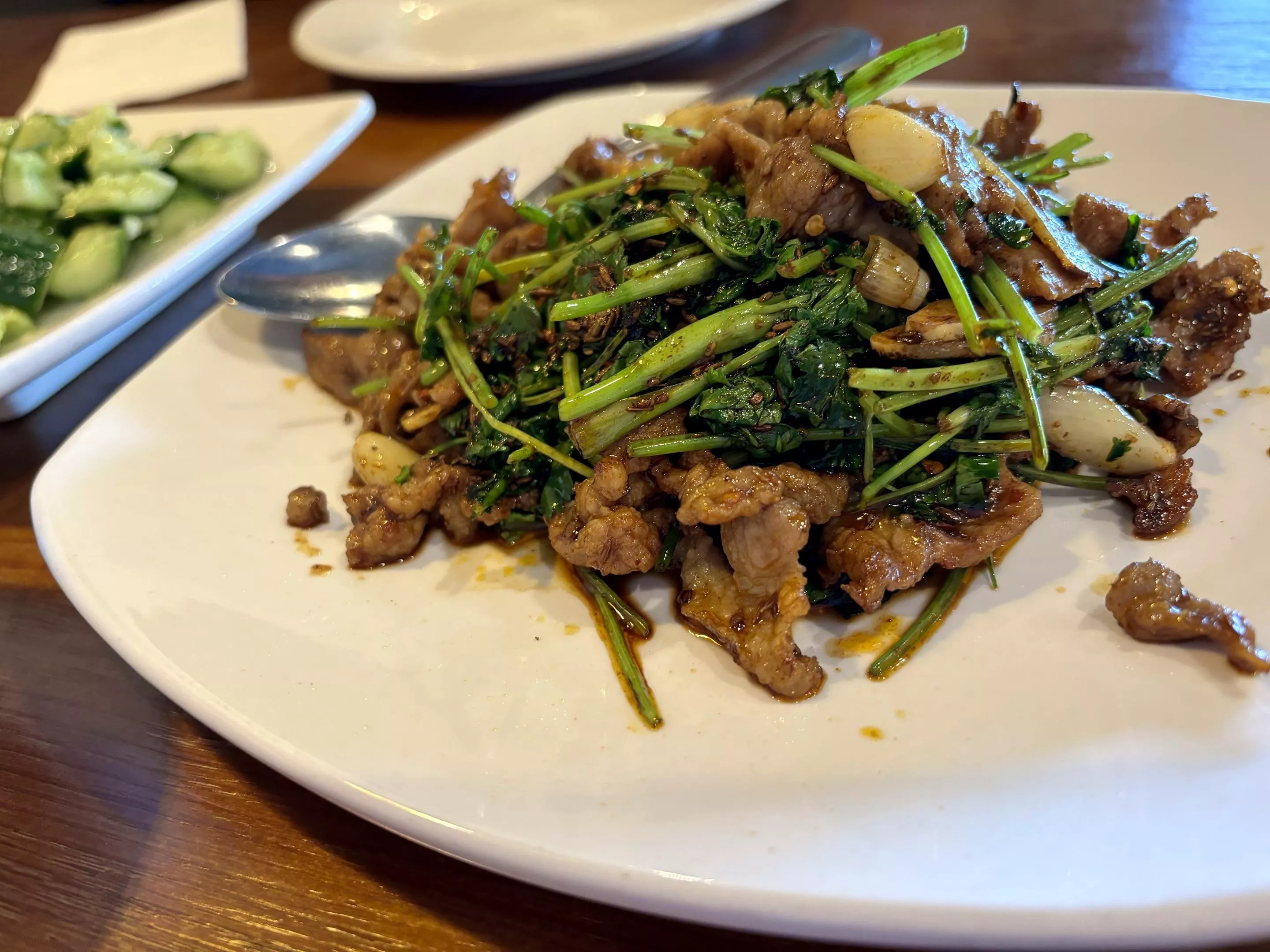 Shaanxi Chinese Restaurant The Cumin Lamb at Spice Spirit Chinese is made with watercress and roasted garlic cloves. Tirion Boan