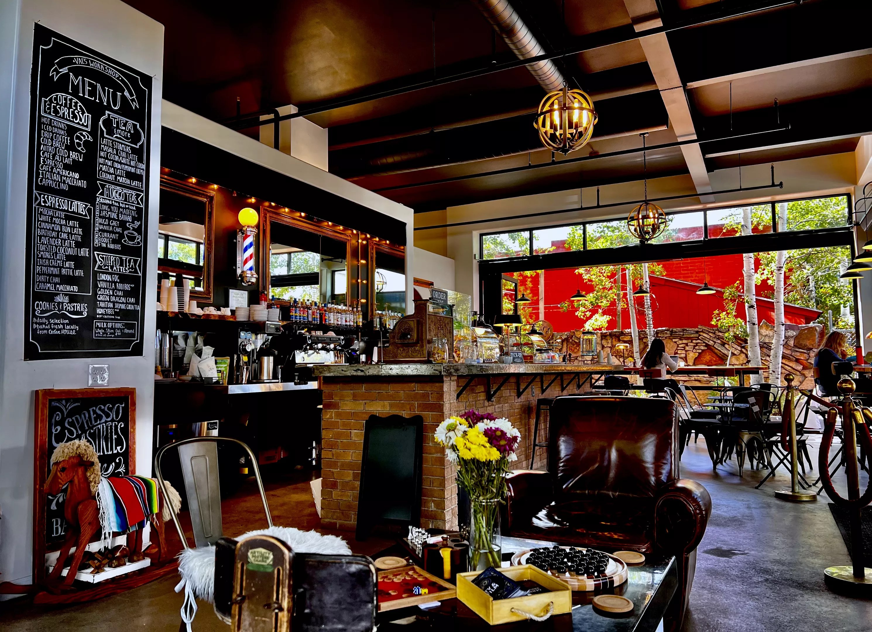1800 N. Fort Valley Road, Flagstaff Located on the way to Snowbowl on Highway 180 in a former Texaco gas station, Flagstaff Station Market Café has all the provisions you need for playing in the pines. There’s a full wake-me-up coffee menu of lattes, mochas and nitro cold brew, an even longer menu of paninis that come out piping hot with a crusty ridged exterior and melty insides, plus energy bars, canned drinks, pastries and yogurt parfaits to replenish all those lost mountain calories. Two faves from the panini menu are the Humphreys which is filled with scrambled eggs, smoked gouda and Applewood smoked bacon and the Highway 180 which has oven-roasted turkey, tomato, provolone cheese and pesto. The dog-friendly patio is also a great place to chill with your four-legged friends after exploring. Val’s is a hybrid barber shop and full-service espresso bar. Val’s Workshop