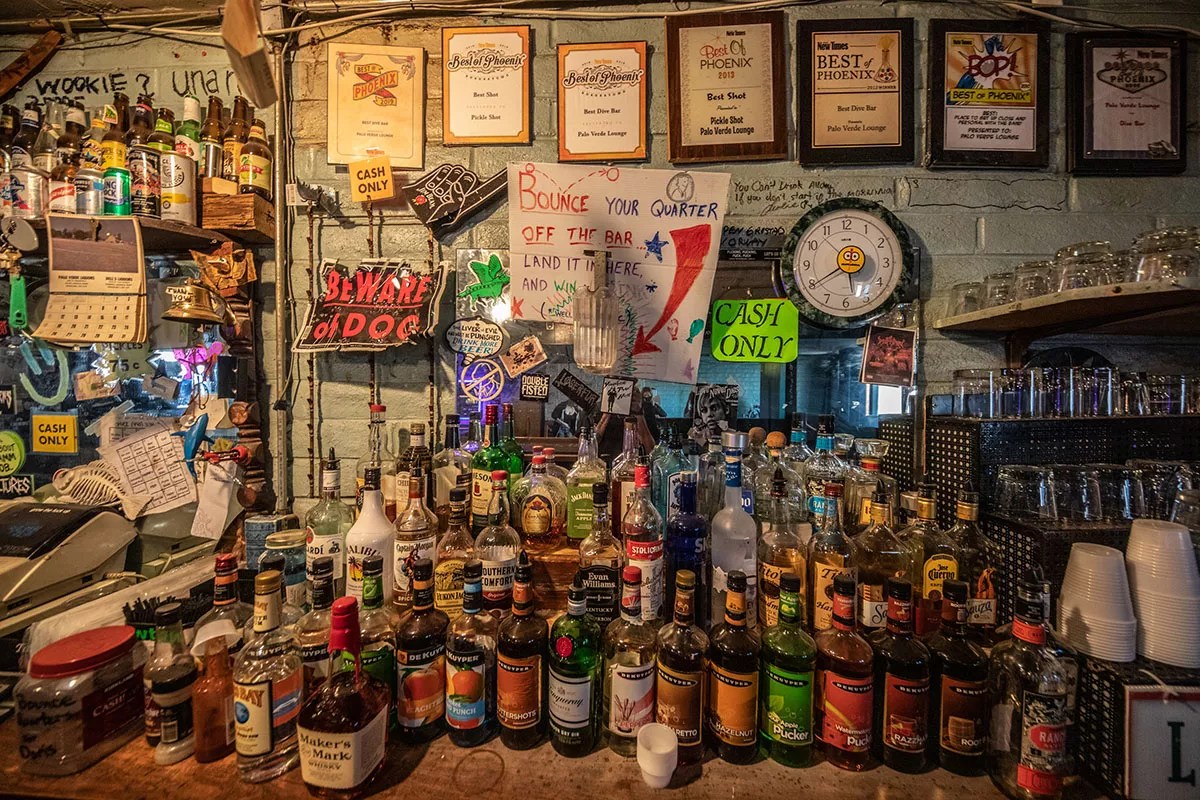 1015 W. Broadway Road, TempeA perplexing question is, “What’s the crowd like at Palo Verde Lounge?” All kinds park themselves at this dark, cash-only Tempe bar: construction workers in hi-vis gear at a prolonged happy hour, weekly regulars from the neighborhood, new drinkers from nearby ASU. Like the clientele, the atmosphere can be hard to predict. Some nights you may walk into a quiet bar filled with laid-back folks nursing beers, shooting pool and watching TV while “Neon Moon” plays serenely over the speakers. Other nights you’ll find a packed bike rack outside and a DJ presiding over a full dance floor inside. And then there are those evenings when you’ll have to squeeze past a metal band unloading gear in the parking lot in order to enter. The man who oversees it all, Chuck Marthaler, is a former patron turned bartender turned owner, and he retains a keen sense of what drinkers are looking for in their local bar: cheap drinks, poured strong, by a bartender who’s quick to commit a regular’s order to memory.