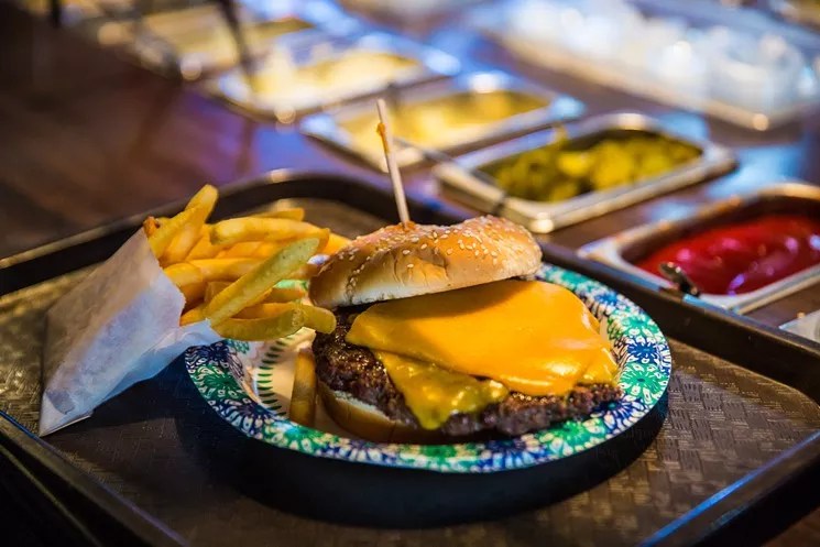 If Bad Jimmy’s is where cool kids chow down on thin smash burgers, Harvey’s Wineburger takes a different approach altogether. At this uptown staple, a crowd of regular barflies digs in to almost impossibly thick patties. The burgers, which really are almost meatballs, are cooked with a splash of red wine, hence the name. This technique keeps them juicy and plump. Toppings include barbecue sauce, jalapenos, bacon and onion rings in the Rodeo, or blue cheese and hot sauce in the Buffalo Bleu. We’re partial to the Mushroom Burger, topped with grilled mushrooms, onions and Swiss cheese, and doused in a splash of Worcestershire sauce. Grab one of the few high-top tables or a seat at the bar in this dark, loud dive and eat enough beef to last a week.