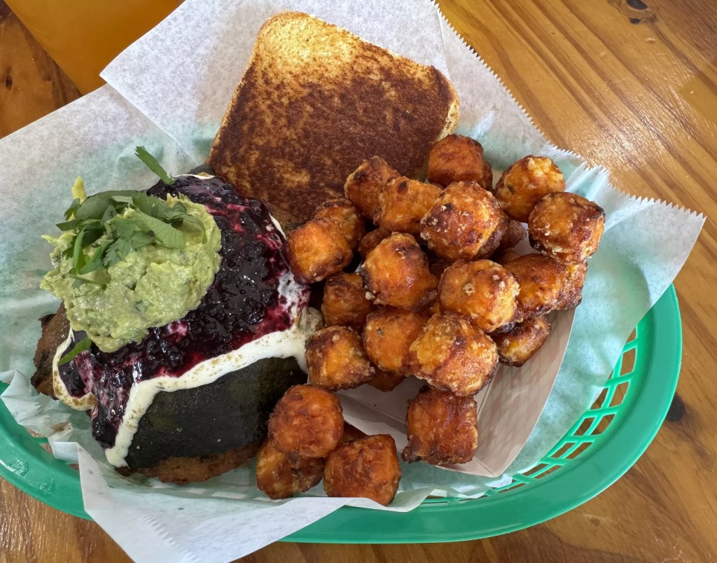 Many know Stoop Kid as a breakfast destination that serves stacked bagel sandwiches. And these creative combos are a fantastic way to start the day. But we tend to visit Stoop Kid in the afternoon, when the tiny kitchen switches gears from bagels to burgers. The counter-service spot is located within The Churchill, downtown Phoenix’s collection of shipping containers. There, the staff sling crispy smash burgers elevated with delectable toppings such as homemade dill pickles and melty Gruyere cheese. Go all out with a Sunny, which comes loaded with a fried egg, or opt for the Decaf, a veggie burger topped with avocado, tomato, sprouts, diced pickles and onions. Complete your meal with your choice of potatoes – Curlies or Tots and then head next door to the Brill Line for a beer. Once your name is called, snag a table to chow down in the Churchill’s shaded courtyard.