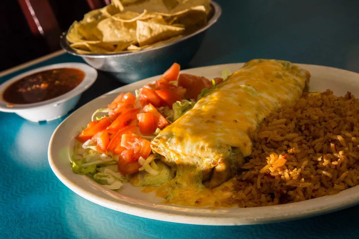 To order a green chile burrito from Rito’s, you have to be hungry. You have to be tolerant of heat (the cooks use Hatch chiles when in season), ready for a goopy latticework of melted cheese, okay with making a mess, okay with your lunch companions seeing you turn into a kid, and again, hungry, but hungry for more than food. A Rito’s burrito satisfies a primal hunger for the spicy, comforting, soulful food of the Southwest. That’ss because a green chile burrito from Rito’s is one of the rare places where flour tortillas, yellow cheese, and stewed meat achieve, with the help of chiles, perfection. Ascend to yet another level by going enchilada-style. Damn, it’s good to eat in the Southwest.