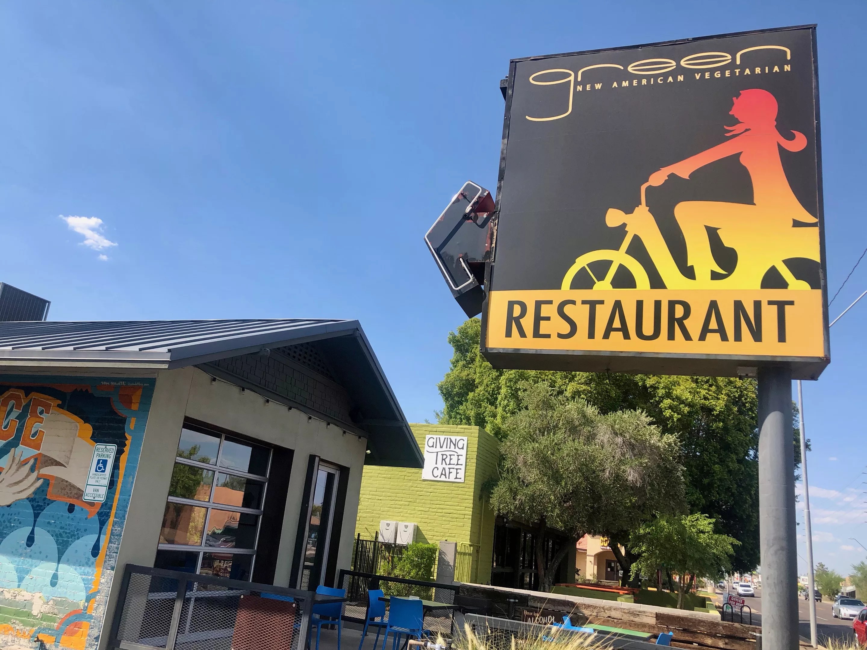Chef Damon Brasch was the first restaurateur in the Valley to seduce herbivores and carnivores alike with meatless variations on burgers, chicken, crab puffs, po’ boys, cheesesteak, and those legendary Buffalo wings. Green’s mock meats could fool even the most anti-veggie meat-eater, and hearty sides like chili fries, soy-free samosas, fried Brussels sprouts, and eggless rolls make it a meal that leaves just enough room for dessert from next-door sister business tSoynami (at the Phoenix location), where soy-based ice cream treats in 18 varieties await – including popular flavors like cookies ‘n’ cream, mint, peanut butter and chocolate, rocky road, peach cobbler, and chocolate chip cookie dough. Green’s two locations stand out as the places in town where we miss meat the least.