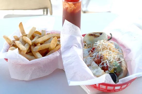 Mariscos Ensenada A Sonoran hot dog from La Frontera. Heather Hoch
