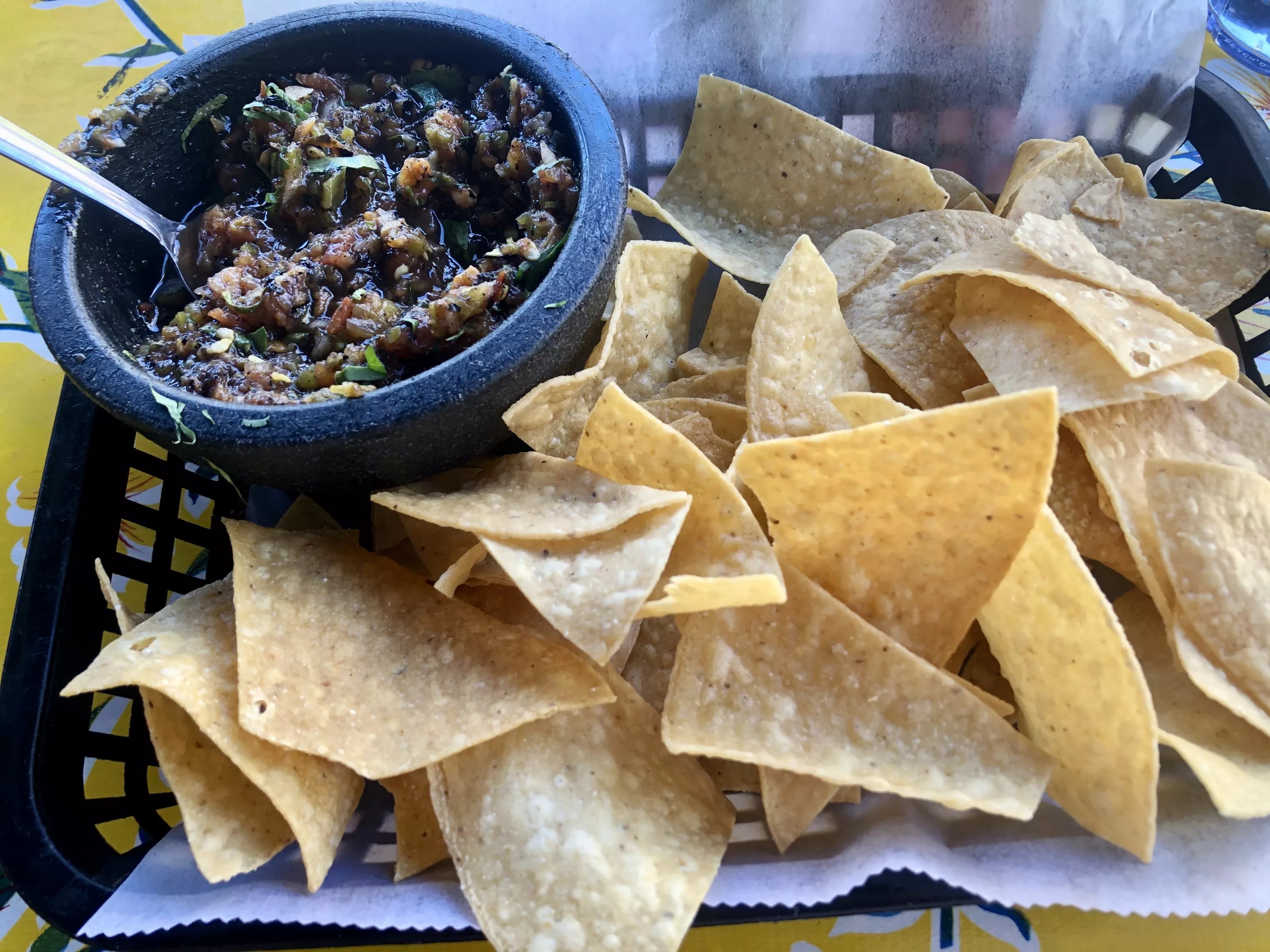 The family-owned Mi Patio has been around since 1984, the dining room aesthetic classically kitschy and open daily from 10 a.m. to 10 p.m. During that window, you can be served with as many bowls of chips and dishes of salsa as you can handle. Mi Patio is known, far and wide, for super-fast chip service. Warm bowls of tortilla chips come right away, and to make them somehow better, give them an extra dusting of salt. The ultimate salsa? Ask for a side of the seafoam-green Baja sauce. You’re welcome in advance.