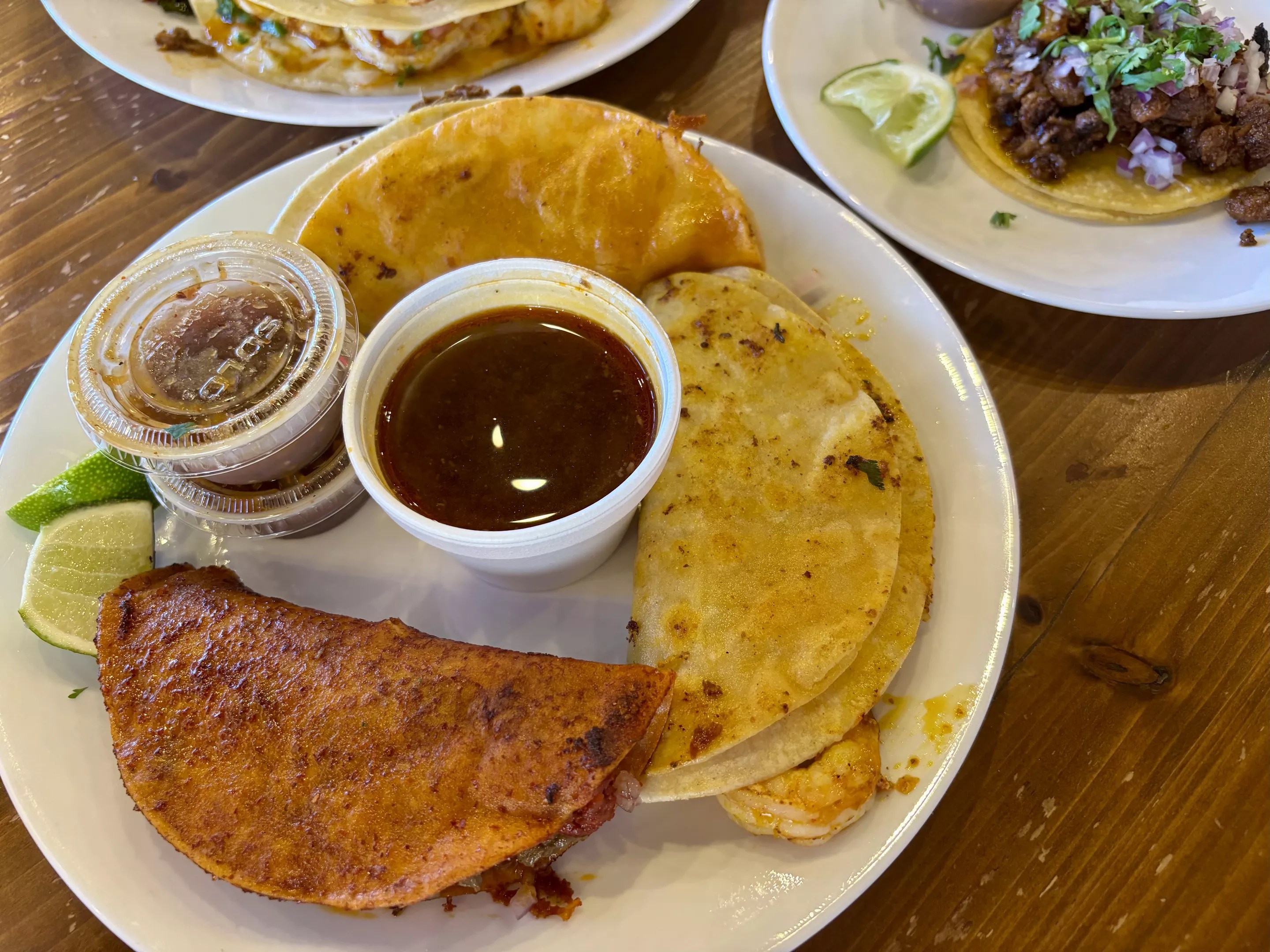 Multiple locations Tacos Chilango takes inspiration from the street food of Mexico City. It’s grown from one restaurant to three – in Phoenix, Avondale and Litchfield Park – since opening in 2020. Tacos Chilango’s menu ranges from more traditional tacos al carbon to queso tacos and massive machetes. The al pastor tacos are a must order – juicy, a touch spicy and with a hint of sweetness from cubed pineapple. While not everyone loves cheese and seafood, the shrimp queso taco was another standout on the menu. The comforting, gooey cheese isn’t quite as heavy with shrimp and a crisp cabbage slaw tucked in. A final surprise on the menu takes the milanesa filling of a cemita – breaded steak and refried beans – and packages it in a tortilla. Tacos Chiwas opened a third outpost at Sky Harbor in June. Tirion Boan