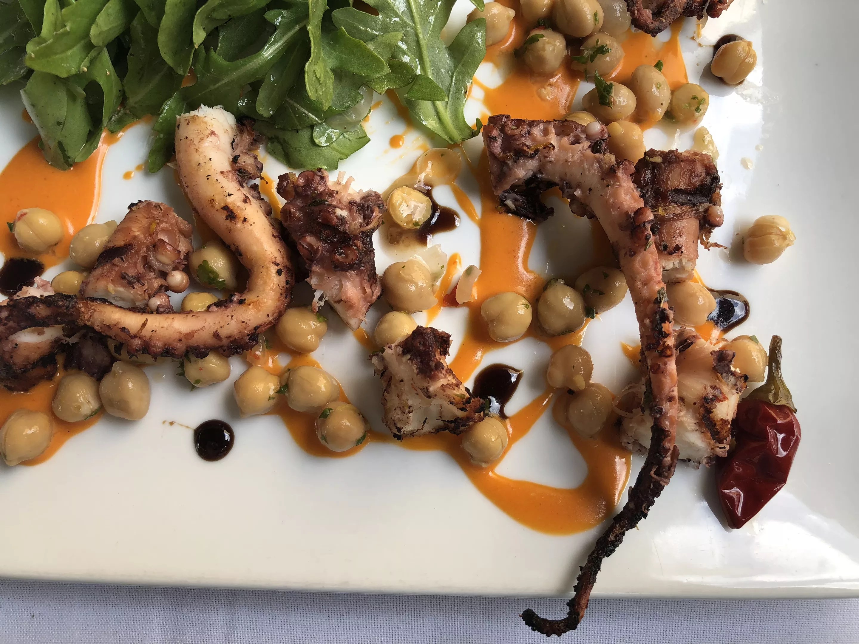 Grilled octopus, natural for a chef who grew up summering 100 yards from the sea.