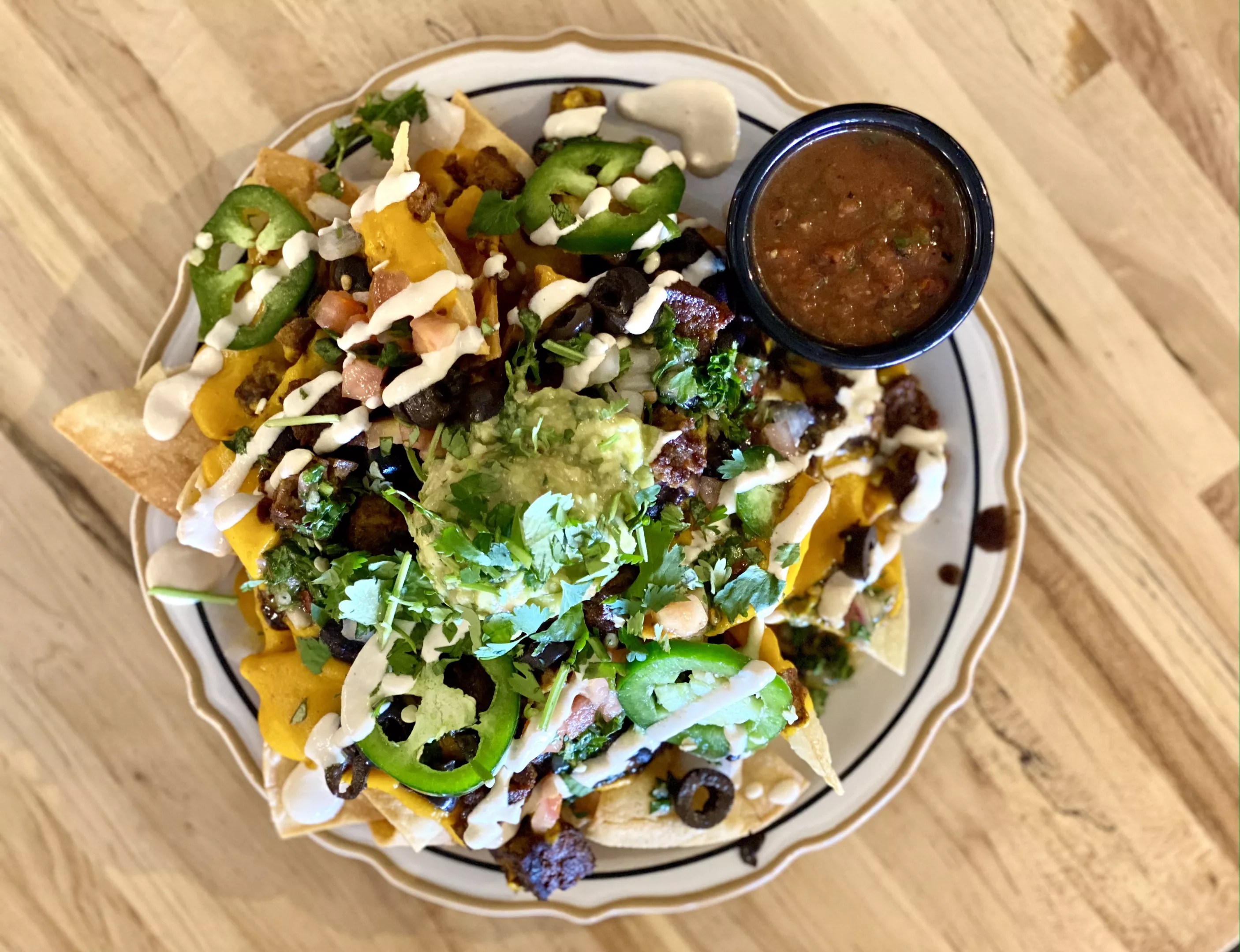 Melty cheese, crunchy chips, meaty vegan carne asada, guac, beans — Verdura’s nachos have it all.