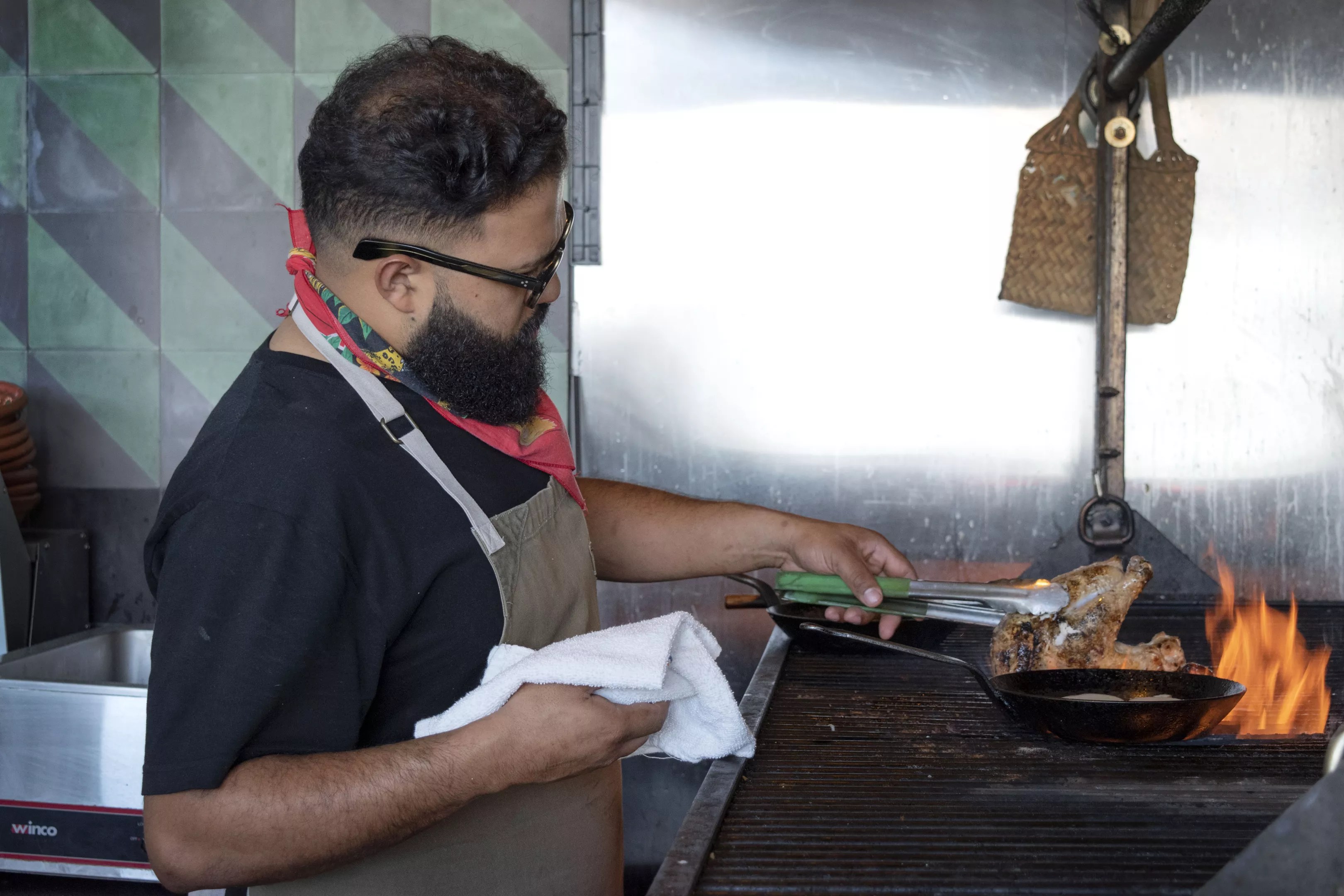 Andrade took the calm, white-painted space and doused it in hot pink and yellow neon. Locally made piñatas hang from the ceiling, graffiti paints the bathrooms, and a firey grill spits flames over steaks and other distinctly Sonoran food Andrade cooks for his hungry fans.