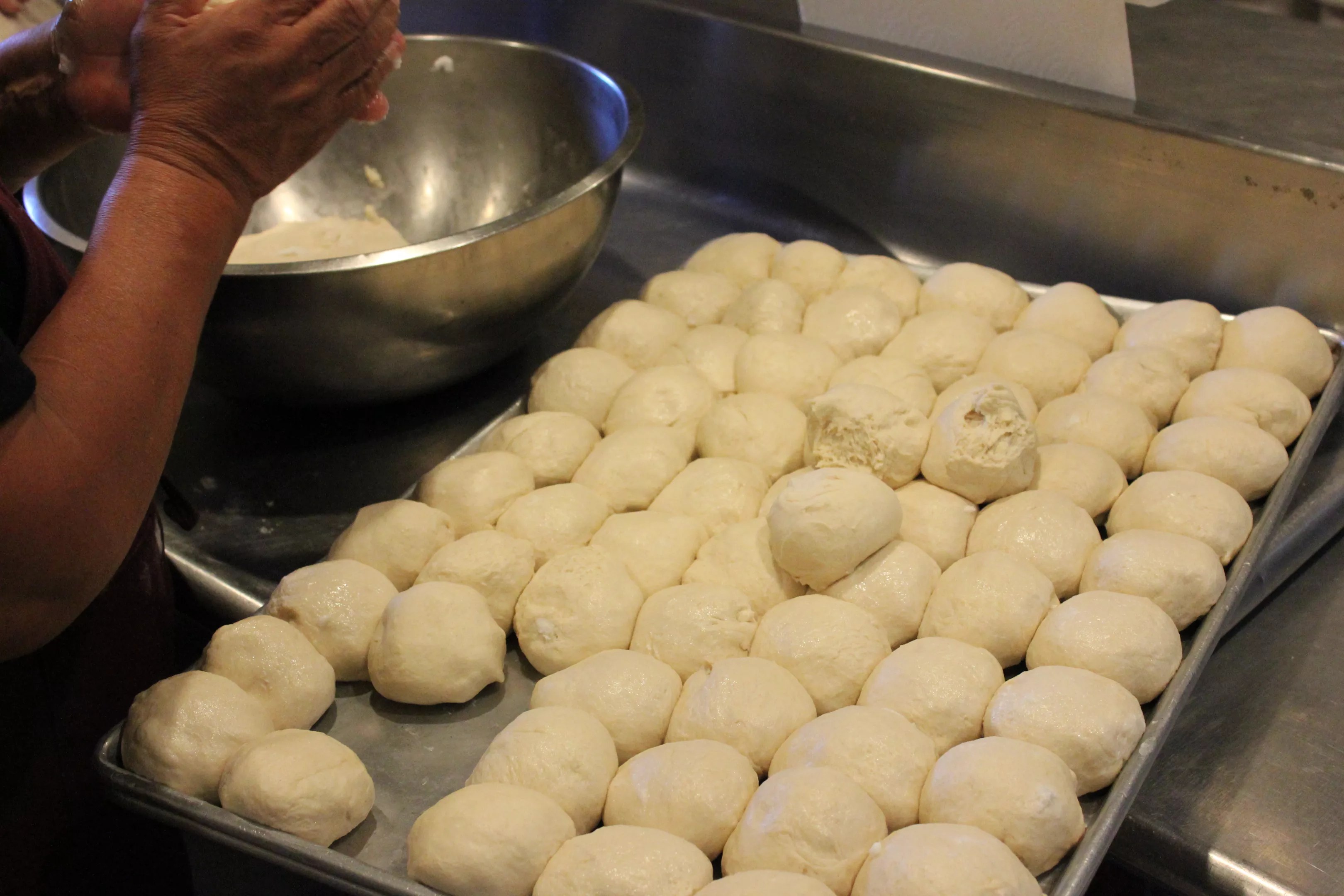 A tray of fry bread dough being shaped at Fry Bread House.