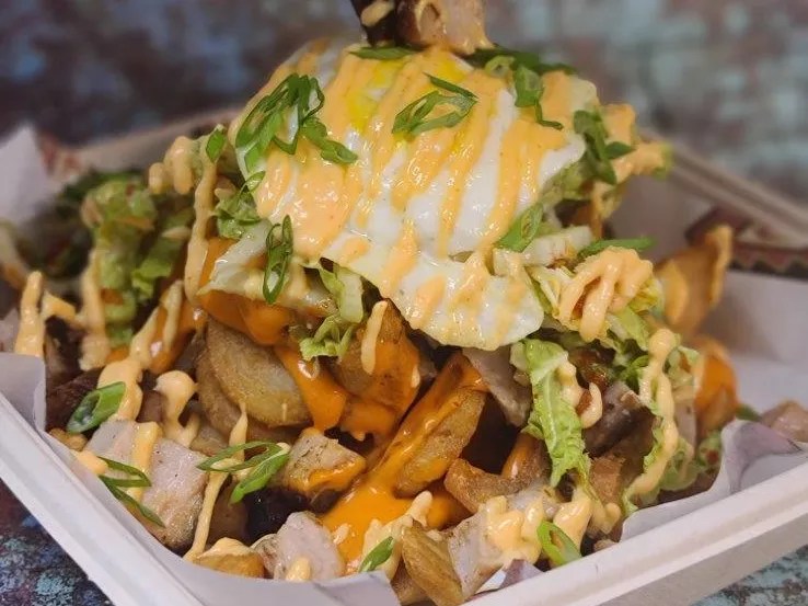 Taste of Chase, Section 130 For something a little more snackable and shareable, try the Korean Loaded Fries. This special tops fries with gochujang-spiked cheese sauce, smoked pork belly, sweet chili-dressed cabbage, sliced green onions, a fried egg and sriracha aioli.