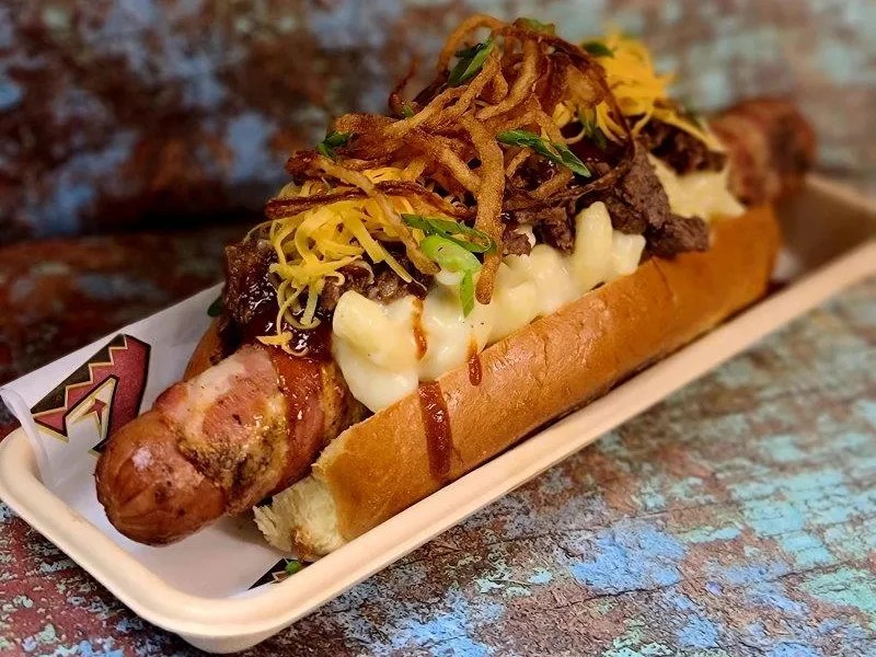 When the team faced the Los Angeles Dodgers during the playoffs, Chase Field’s concession stands were ready to celebrate with three special menu items. Fans cheered for the Diamondbacks while noshing on these specials. Celebrate the playoffs with a super-stacked hot dog from Big Dawgs. Arizona Diamondbacks