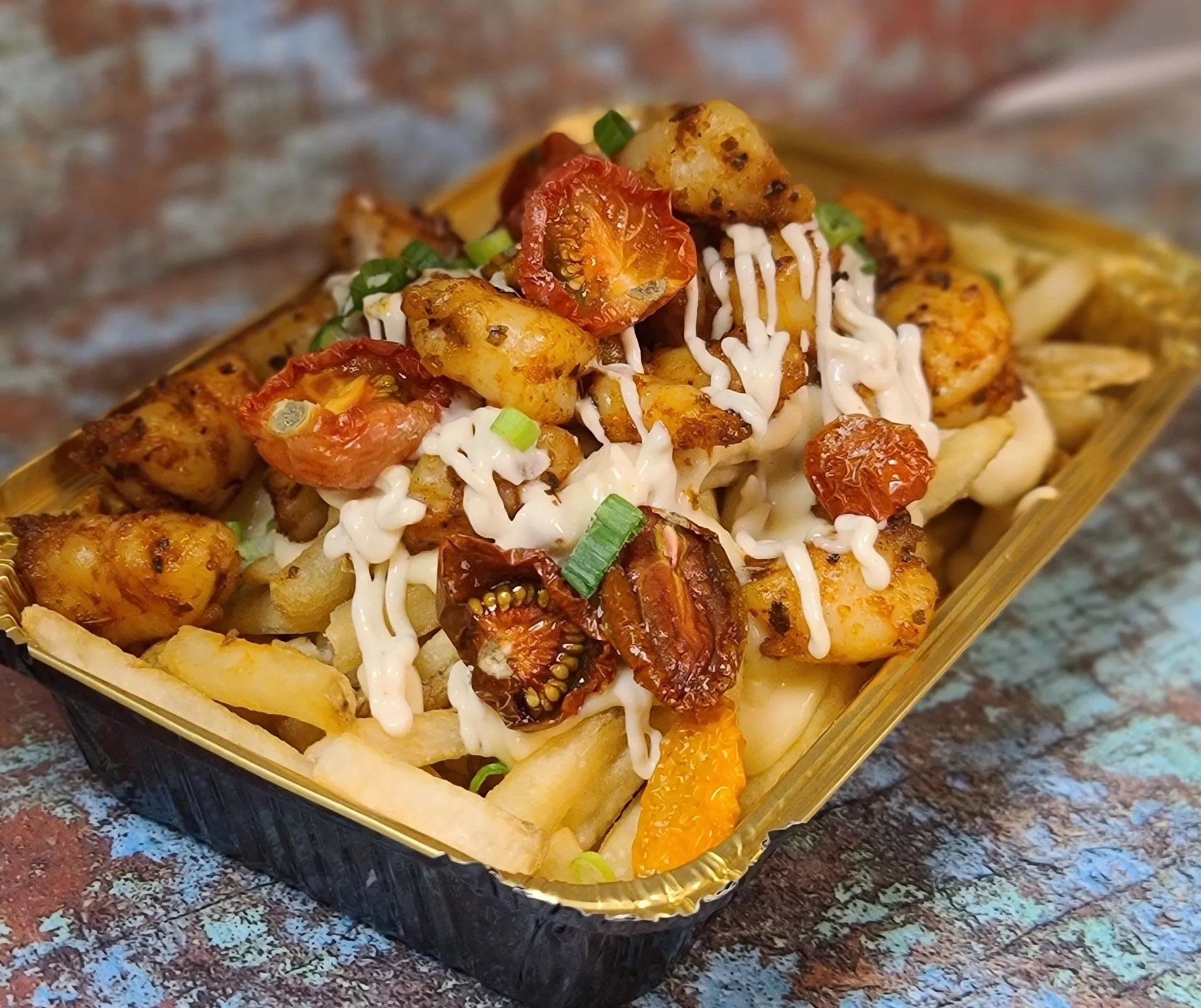 Taste of Chase, Section 130 Enjoy the flavors of the South with Taste of Chase’s Cajun Shrimp Fries. These loaded potatoes are topped with Cajun Gulf shrimp, garlic cheese sauce, lemon aioli, oven-dried tomatoes and scallions. Forget bright yellow nacho cheese when it comes to this dish. Arizona Diamondbacks