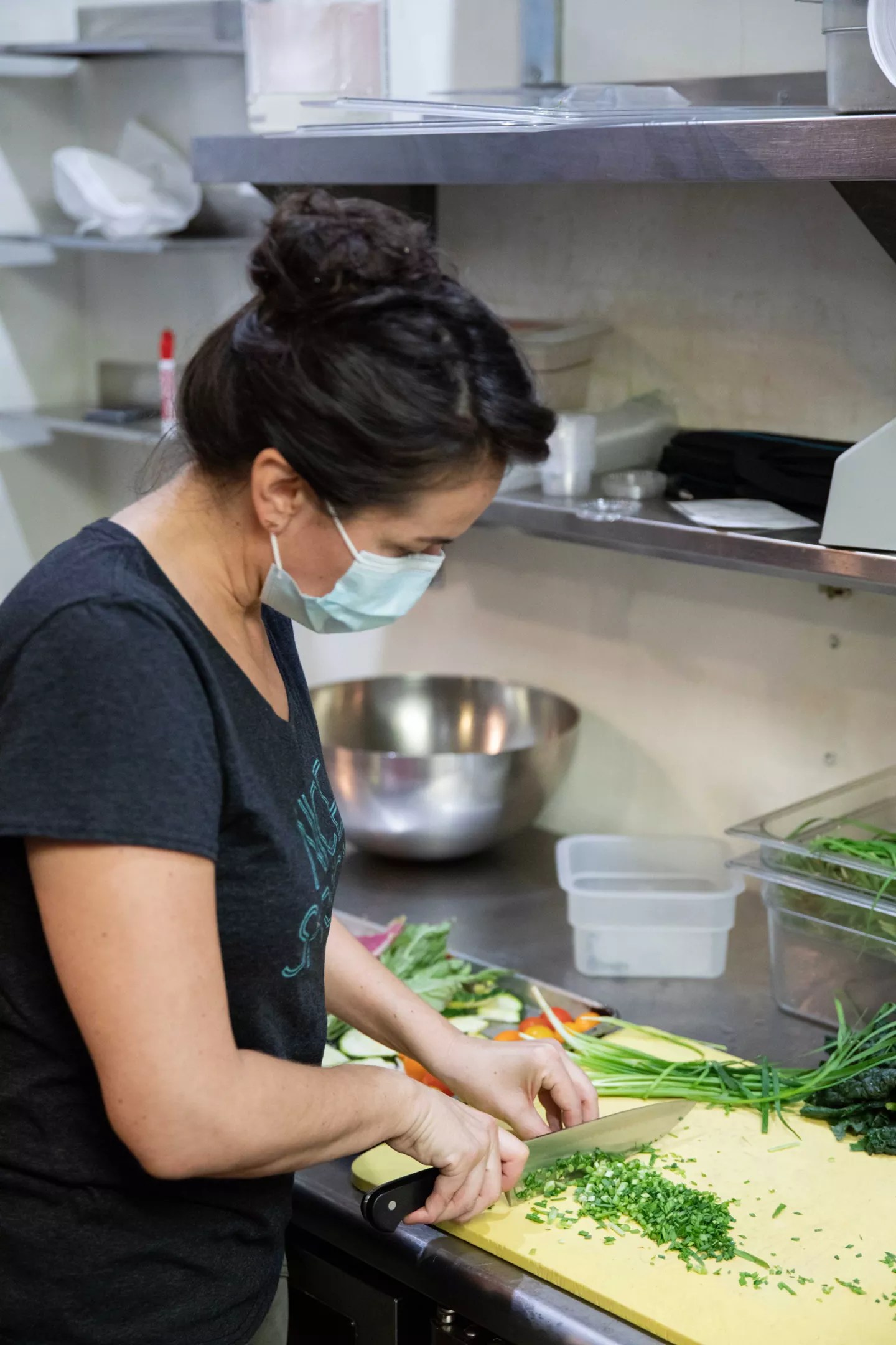 Chef Danielle Leoni preparing meal kits.
