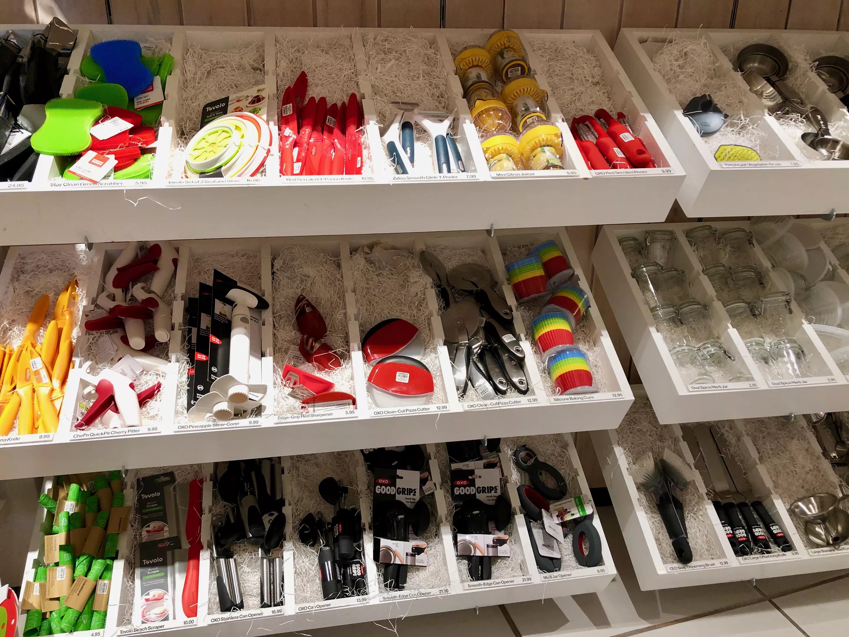 Crate & Barrel is a furniture and home decor store with a serious kitchen component offering plenty of pricey, gourmet eye-candy. But the great thing about this gorgeously merchandised store is its goal of capturing the attention of young cooks. You know, people who might actually be entertaining beyond chips and dip for the very first time. The place is stocked with gadgets, cookware, cutlery and appliances galore, but C&B creates a mood – offering pretty vignettes of contemporary dinnerware, glassware, and barware to spark the customer’s imagination. Find Japanese serving pieces with chopsticks to a folding portable grill for cooking out on your apartment’s tiny balcony C&B is surely assuming. And as is true at other high-end corporate stores, not everything is expensive, and plenty of items go on sale.