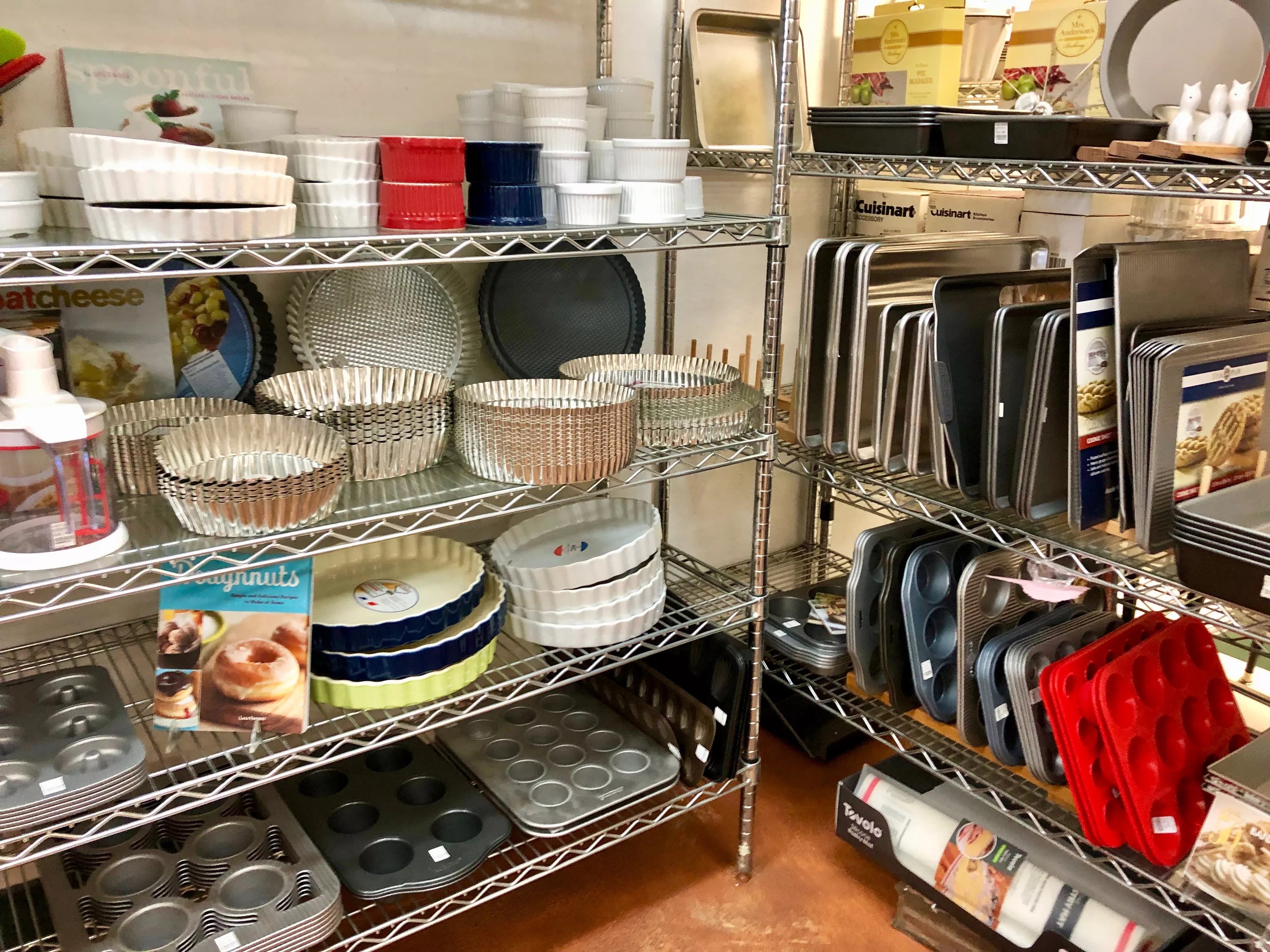 It’s easy to kill an hour in this shop and hands-on cooking school, crammed with everything from tongs, whisks, Wüsthof knives, and Le Creuset cookware to fondue sets, soup tureens, panini presses, and paella pans. Coffee beans are also sold here, as are teas, locally made salsas and crackers, fancy vinegar options, and more. Find local ceramicist Lisa Howe’s oven-proof, dishwasher-safe stoneware, plus a pit stop for ready-made gift baskets (they’ll customize them if you have time), a quirky set of animal print coasters, or a pretty apron. There’s everything needed for cool cocktails (including whimsical, hand-painted martini glasses and little umbrellas), and a kiddie section to foster the budding cook. Shop for cookbooks near the back of Sweet Basil Gourmetware – where they also offer gently used cookbooks.
